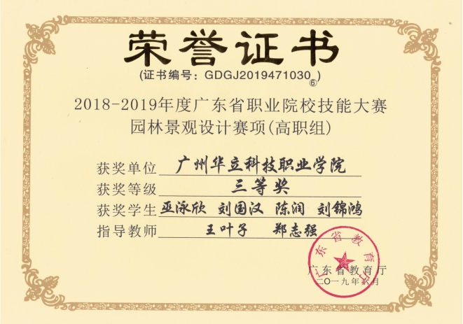 2019年廣東省職業(yè)院校技能大賽園林景觀設計賽項(高職組)三等獎