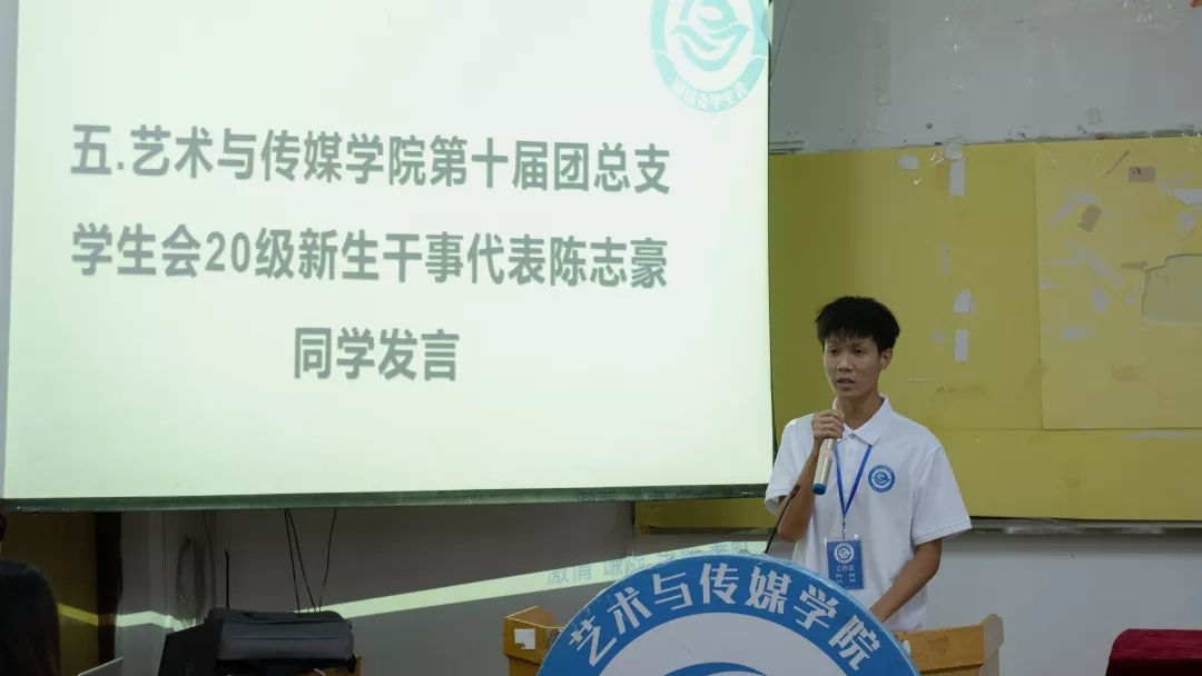 藝術(shù)與傳媒學(xué)院團(tuán)總支學(xué)生會(huì)20級(jí)新生干事代表陳志豪同學(xué)代表發(fā)言,他提出一下幾點(diǎn)建議: