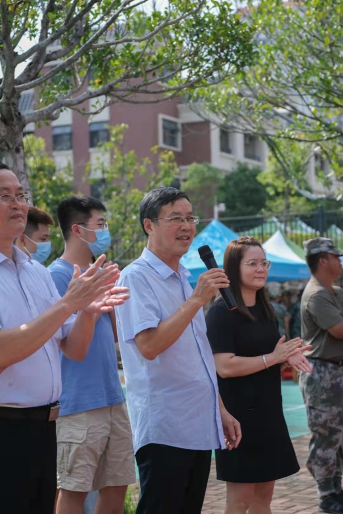 李于昆院長代表藝術(shù)與傳媒學(xué)院全體教師,首先表達(dá)了對參訓(xùn)學(xué)生的關(guān)心,鼓勵(lì)同學(xué)們發(fā)揚(yáng)嚴(yán)于律己、吃苦耐勞精神,展現(xiàn)出積極向上的精神風(fēng)貌,以高標(biāo)準(zhǔn)完成軍訓(xùn)任務(wù)。同時(shí),他提醒同學(xué)們注意身體,在炎日的酷暑下要多喝水,共同做好疫情防控工作。中秋佳節(jié)臨近,李院長提前向軍訓(xùn)教官和同學(xué)們致以節(jié)日的問候!