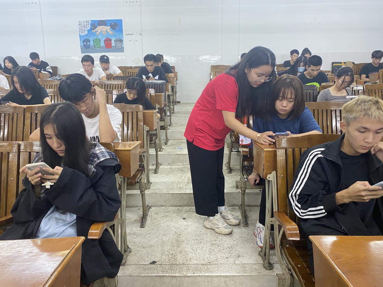 當(dāng)天早修期間,在21級(jí)學(xué)生各班的固定教室,藝傳學(xué)院進(jìn)行了黨章考試??荚噧?nèi)容除最基本的黨章之外,還涵蓋生活、歷史、自然地理等各方面,考驗(yàn)學(xué)生們平時(shí)對(duì)于百科類知識(shí)的了解。