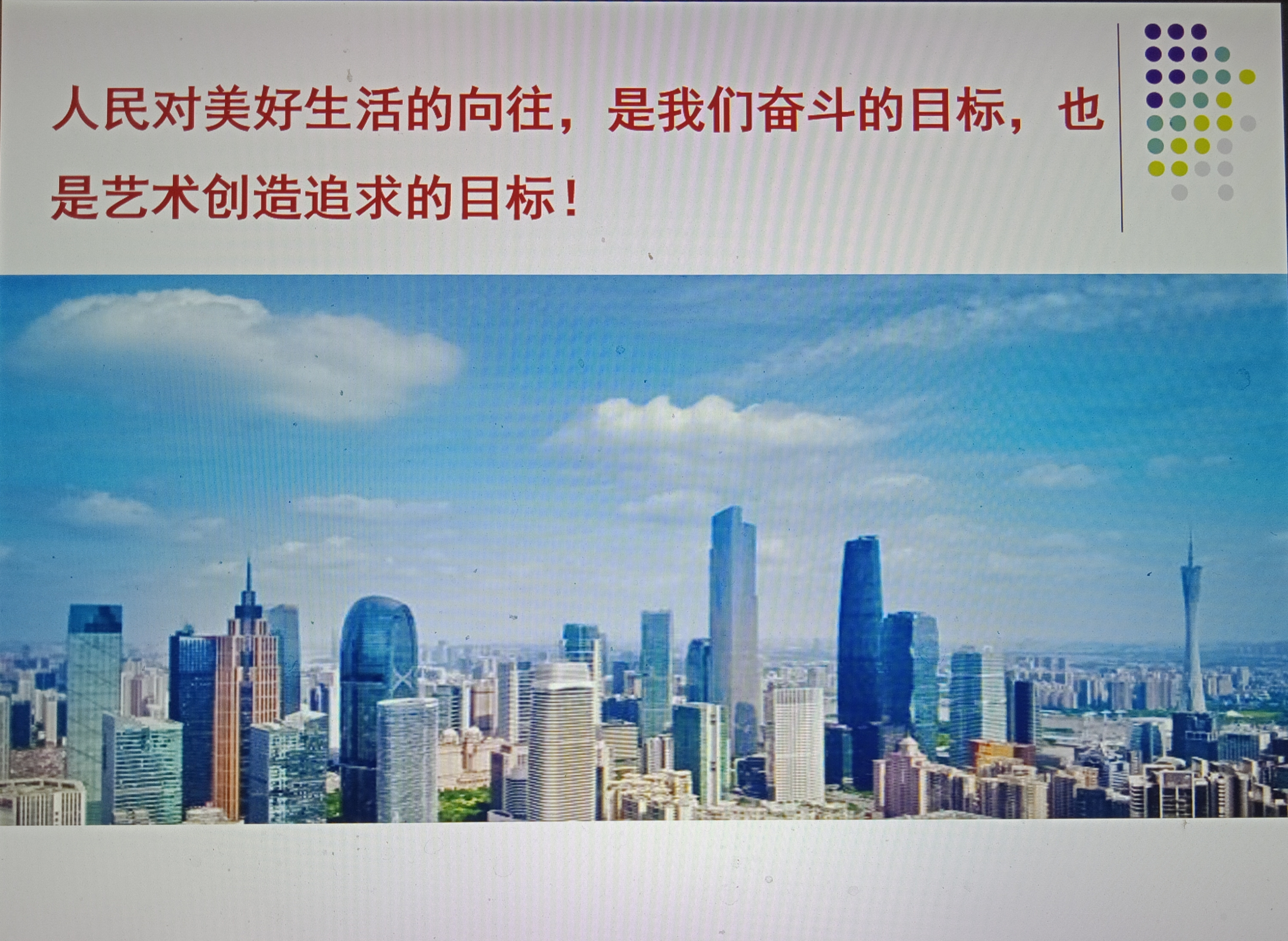 李于昆立足現(xiàn)實(shí)、引經(jīng)據(jù)典、主題突出、內(nèi)容豐富,為同學(xué)們講授了一場(chǎng)生動(dòng)的思想政治教育,勉勵(lì)同學(xué)們“人們對(duì)美好生活的向往,就是藝術(shù)創(chuàng)造的奮斗目標(biāo)”。