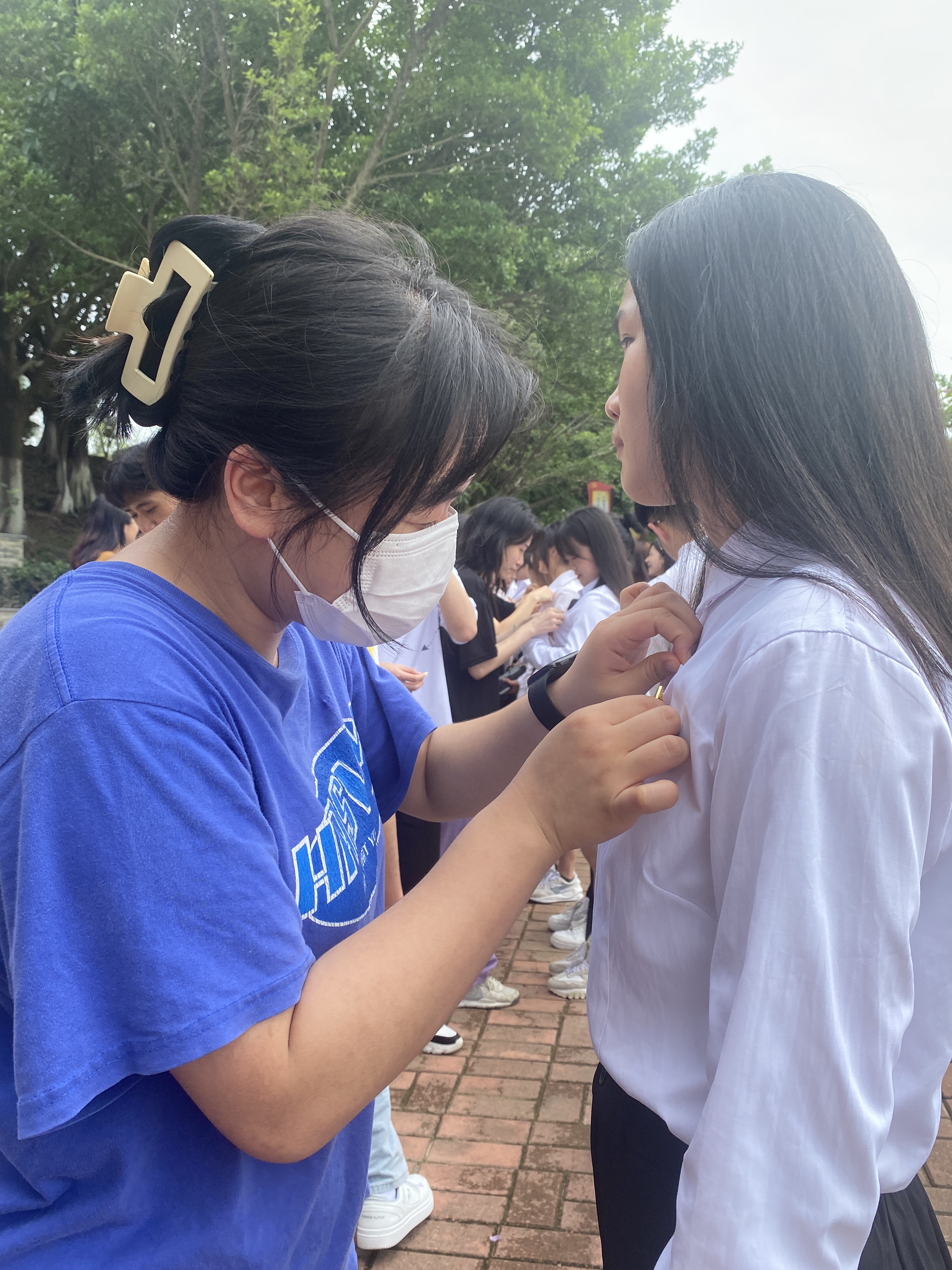 接下來(lái),進(jìn)行入黨宣誓儀式和佩戴黨徽。由宋依謎同志領(lǐng)誓,全體學(xué)生黨員舉起右手面對(duì)黨旗莊嚴(yán)宣誓。宣誓結(jié)束,老黨員為新黨員佩戴黨徽,叮囑新黨員牢記入黨宣誓,不忘使命,時(shí)刻以共產(chǎn)黨員的標(biāo)準(zhǔn)嚴(yán)格要求自己。
