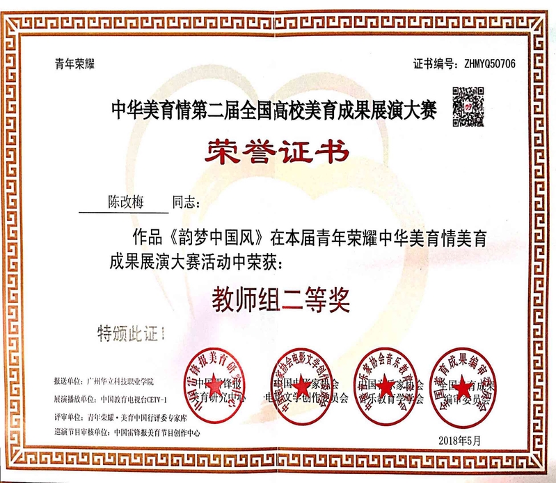 2018年陳改梅老師獲第二屆“國青杯”全國高校藝術(shù)與設(shè)計作品展評二等獎