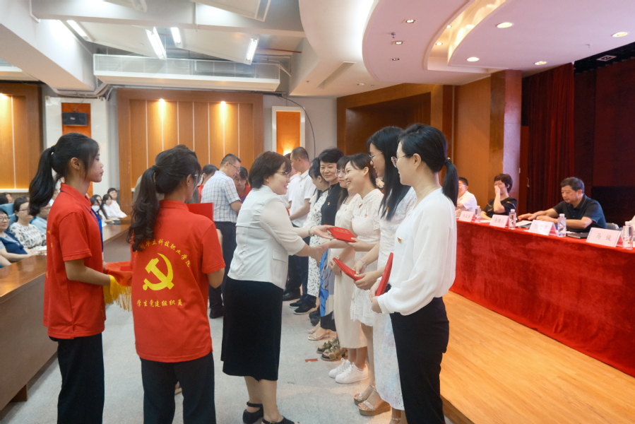 陳良聲、易健民、馬俊、陳顯強(qiáng)、王洪艷分別為受表彰的先進(jìn)基層黨組織、優(yōu)秀黨務(wù)工作者和優(yōu)秀共產(chǎn)黨員頒發(fā)榮譽(yù)證書、授匾。