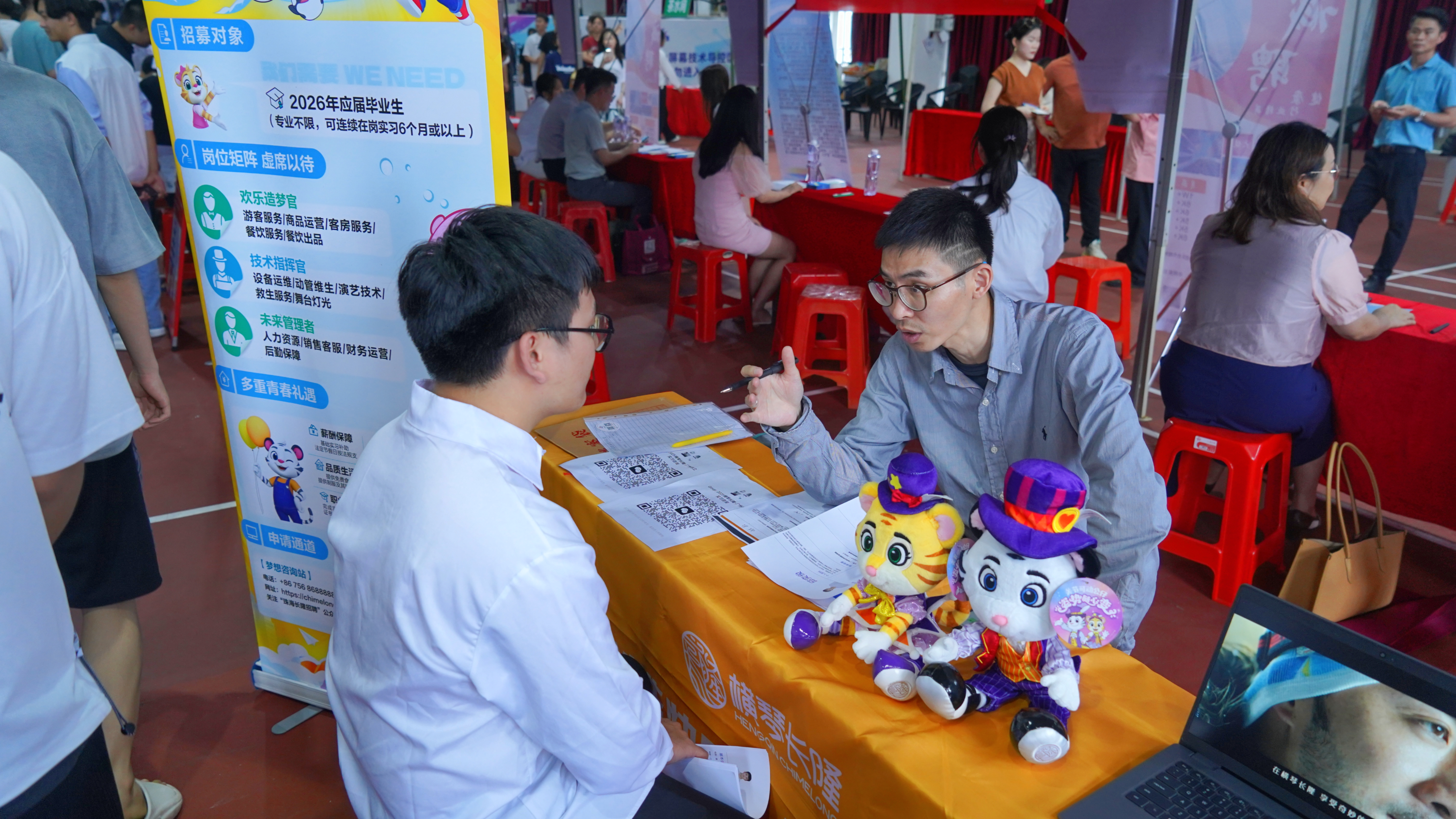 招聘會現(xiàn)場,各企業(yè)展位前人潮涌動,同學(xué)們手持精心準(zhǔn)備的簡歷,積極與招聘人員交流,詳細(xì)了解企業(yè)的招聘需求、崗位信息及發(fā)展前景。在眾多企業(yè)中,珠海長隆投資發(fā)展有限公司備受關(guān)注。該公司此次受藝術(shù)與傳媒學(xué)院邀請前來招聘,其獨特的企業(yè)文化和優(yōu)質(zhì)的崗位吸引了不少同學(xué)駐足咨詢。