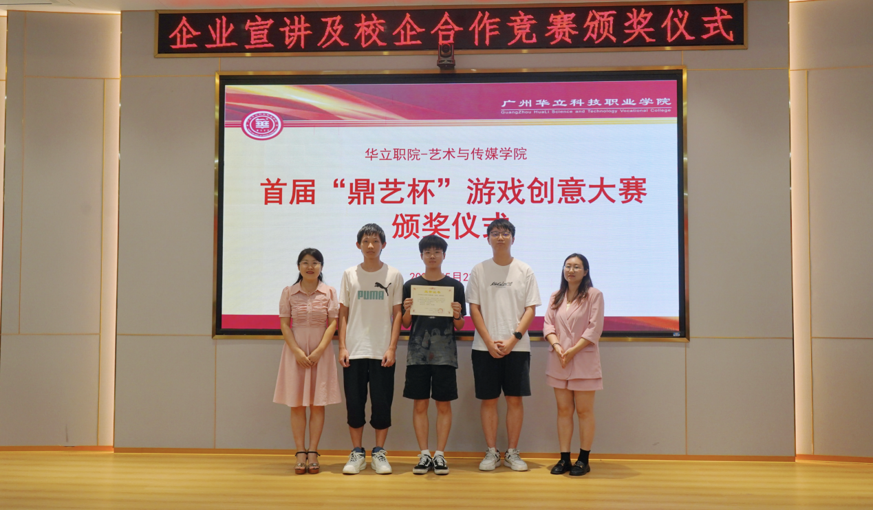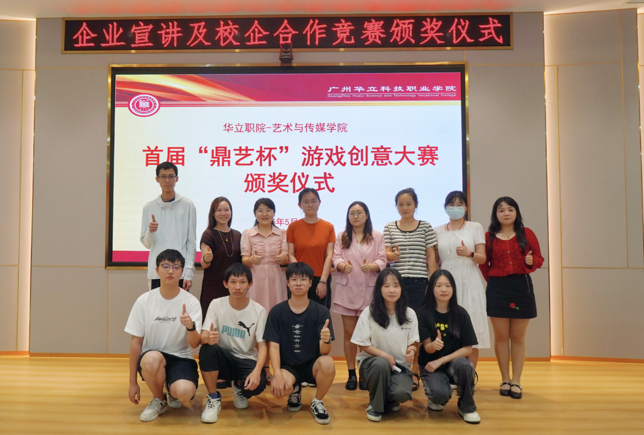 廣州鼎藝網(wǎng)絡(luò)科技有限公司人事經(jīng)理?xiàng)蠲?、人事助理?xiàng)町嫞c廣州華立科技職業(yè)學(xué)院藝術(shù)與傳媒學(xué)院黨總支書記兼副院長陳改梅、教科研主任邢雅丹、校外實(shí)習(xí)負(fù)責(zé)老師李子,以及動漫系專業(yè)老師姜兵、徐溧澤等共同出席了本次頒獎儀式。雙方代表齊聚一堂,見證這一承載著創(chuàng)新與希望的重要時(shí)刻。