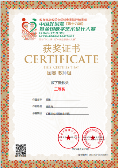 國賽(教師組)數(shù)字?jǐn)z影類三等獎證書
