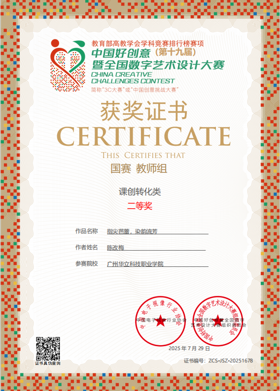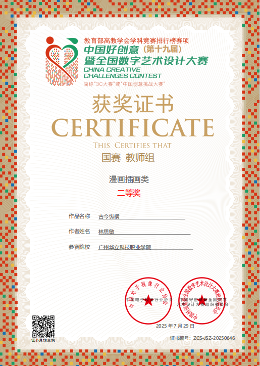 一直以來,學(xué)校領(lǐng)導(dǎo)高度重視教師隊伍的專業(yè)發(fā)展和教學(xué)水平提升,積極為教師們搭建學(xué)術(shù)交流、競賽鍛煉的平臺,定期組織培訓(xùn)與研討,鼓勵教師參與各類專業(yè)競賽與學(xué)術(shù)研究,營造了濃厚的學(xué)術(shù)氛圍和良好的創(chuàng)新環(huán)境。此次喜獲佳績,不僅是對教師個人能力的肯定,更是學(xué)校持續(xù)推進(jìn)教學(xué)改革與產(chǎn)教融合發(fā)展的生動體現(xiàn)。未來,學(xué)校將持續(xù)深化數(shù)字藝術(shù)領(lǐng)域的教學(xué)改革與科研探索,搭建更廣闊的師生發(fā)展平臺,激勵更多教育工作者與學(xué)子在藝術(shù)與科技的融合之路上勇于突破、再創(chuàng)佳績,助力學(xué)校高質(zhì)量發(fā)展。
