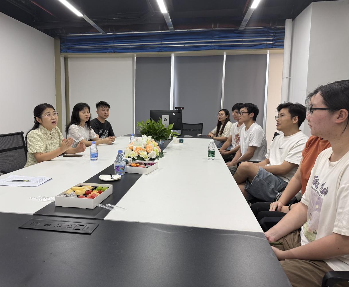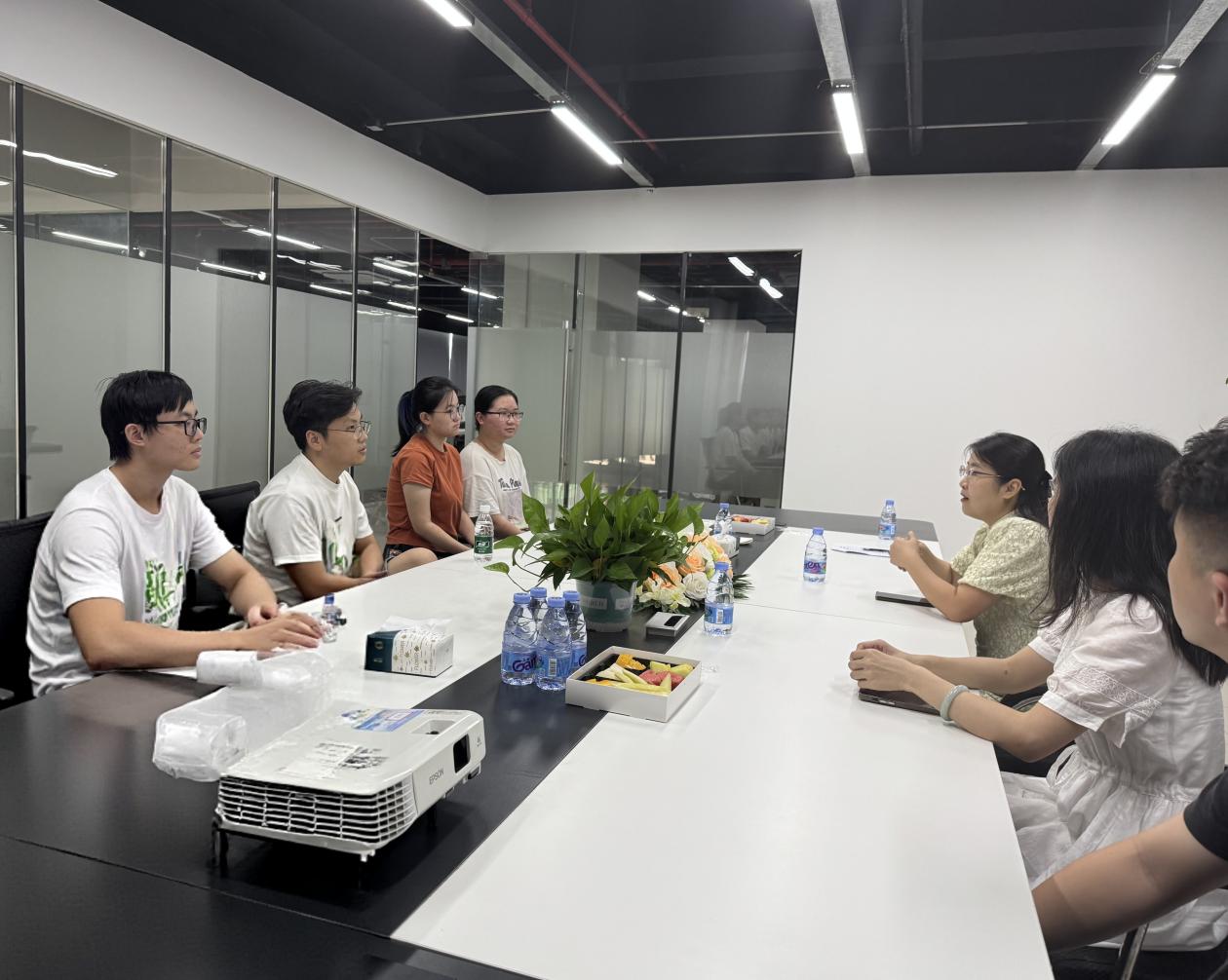 廣州鼎藝網(wǎng)絡(luò)科技有限公司 CEO 胡夢(mèng)滔與人事部經(jīng)理?xiàng)蠲魧?duì)學(xué)院一行的到來(lái)表示熱烈的歡迎,并與我院開(kāi)展座談交流,陳改梅書(shū)記與學(xué)生們親切交流,細(xì)致詢(xún)問(wèn)了他們的工作內(nèi)容、生活情況以及實(shí)習(xí)收獲,提醒學(xué)生在外提高安全意識(shí)和防詐警惕,并鼓勵(lì)大家積極適應(yīng)企業(yè)環(huán)境,將校內(nèi)所學(xué)有效運(yùn)用于實(shí)踐,不斷提升專(zhuān)業(yè)能力和創(chuàng)新意識(shí)。