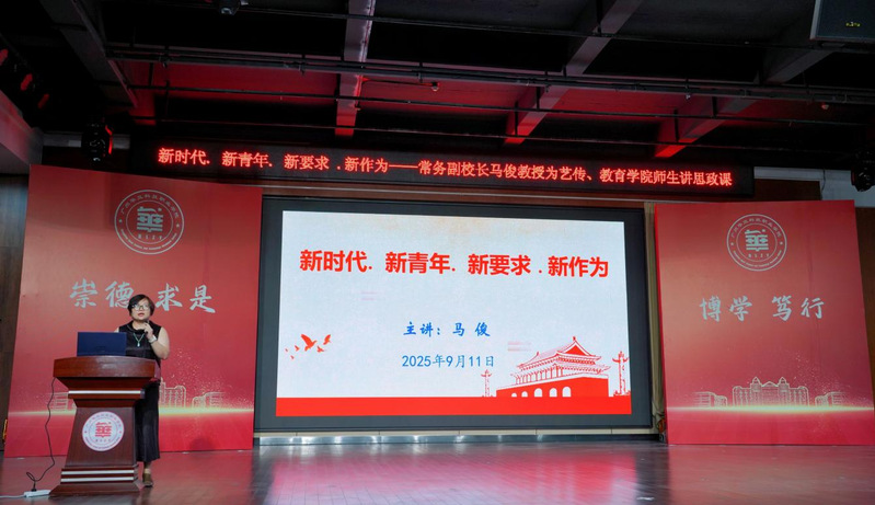 秋意漸濃啟新程,思想領(lǐng)航聚力量。9 月 11 日晚 6 點,學(xué)校常務(wù)副校長馬俊教授以“新時代、新青年、新要求、新作為”為主題,在圖書館八樓報告廳為藝術(shù)與傳媒學(xué)院、教育學(xué)院的700名師生代表們講授了“思政第一課”。馬俊教授用深刻的理論闡釋、鮮活的實踐案例,為在場師生打造了一堂兼具思想深度與情感溫度的思政課。