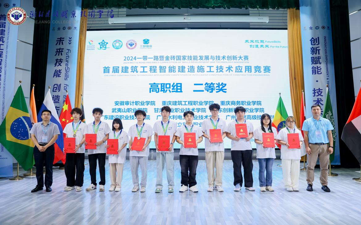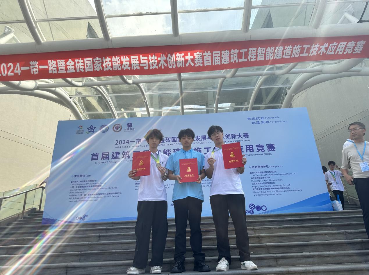 9月26日至28日,由教育部中外人文交流中心、一帶一路暨金磚國家技能發(fā)展國際聯(lián)盟和中國發(fā)明協(xié)會等單位聯(lián)合主辦,西安三好軟件技術股份有限公司、浙江建設職業(yè)技術學院等單位聯(lián)合承辦的2024一帶一路暨金磚國家技能發(fā)展與技術創(chuàng)新大賽首屆建筑工程智能建造施工技術應用賽項(BRICS-ST-027)全國總決賽,在浙江杭州舉行。本屆大賽自4月起,通過校園選拔賽、全國區(qū)域選拔賽,共有來自全國600余所高校、7萬余名師生參與,最終來自全國31個省(自治區(qū)、直轄市)和孟加拉國、馬來西亞等國際留學生共計382所院校、415支隊伍、1500余名師生入圍總決賽。經(jīng)過激烈角逐,我校城建學院學生徐文升、黃梓煥表現(xiàn)出色,在首屆建筑工程智能建造施工技術應用賽項決賽(??平M)中榮獲全國二等獎,指導教師喬亮、甘英浩榮獲優(yōu)秀指導教師稱號,同時,我校憑借前期出色的組織工作,榮獲組委會頒發(fā)的優(yōu)秀組織獎。