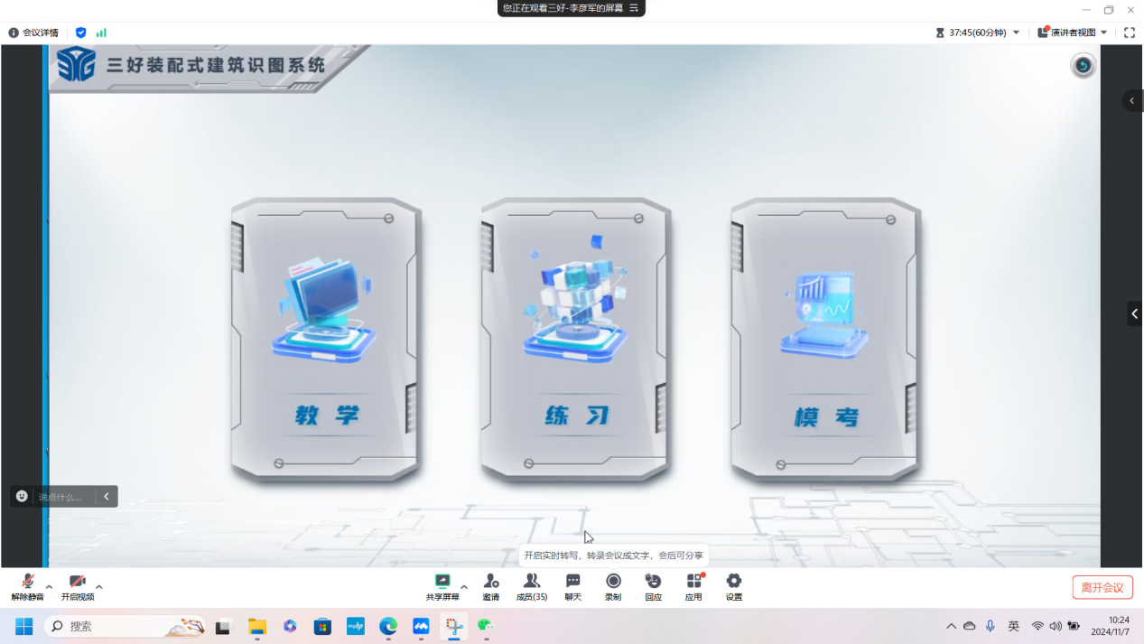為深入貫徹國(guó)家關(guān)于教育數(shù)字化的戰(zhàn)略部署,加速智能建造與教育教學(xué)深度融合的進(jìn)程,我院于11月7日在線上成功舉辦了建筑施工工藝虛擬仿真軟件實(shí)操師資培訓(xùn)活動(dòng)。學(xué)院院長(zhǎng)、教務(wù)處相關(guān)人員、基層教學(xué)組織負(fù)責(zé)人、教學(xué)骨干教師及相關(guān)職能部門(mén)教師等44名教師參與了培訓(xùn),城建學(xué)院院長(zhǎng)陳積光主持。