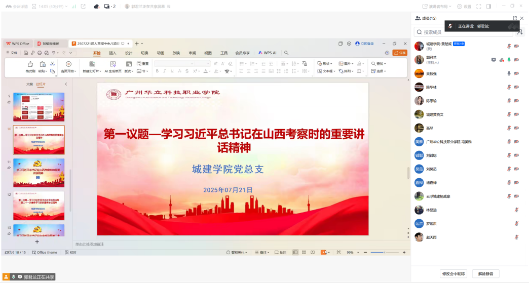 2025年7月21日,城建學(xué)院黨總支召開深入貫徹中央八項(xiàng)規(guī)定精神學(xué)習(xí)教育推進(jìn)會(huì)。會(huì)議以線上形式舉行,通過集中學(xué)習(xí)、案例剖析、工作部署等環(huán)節(jié),推動(dòng)全體師生黨員深化思想認(rèn)識(shí)、強(qiáng)化行動(dòng)自覺。