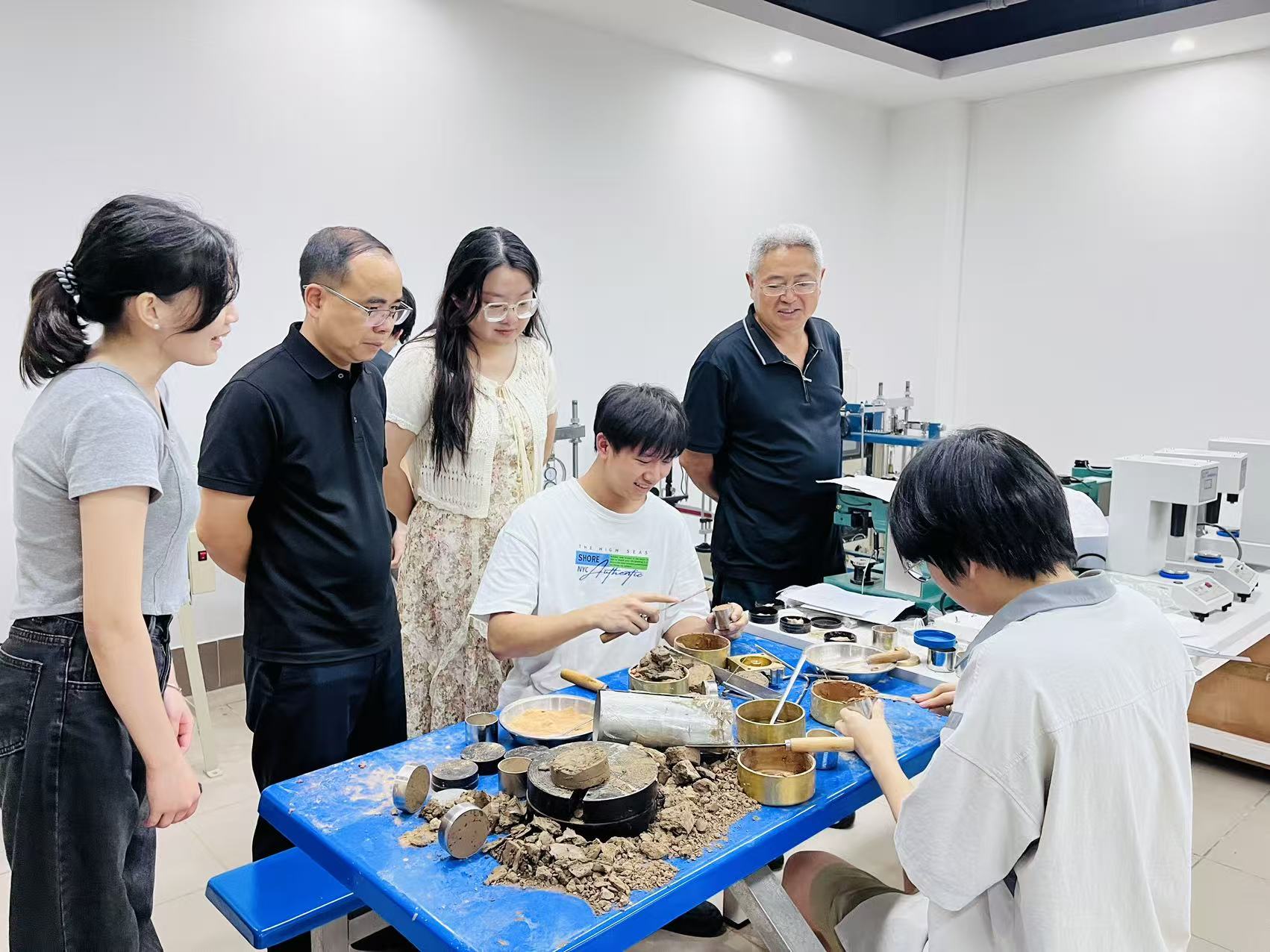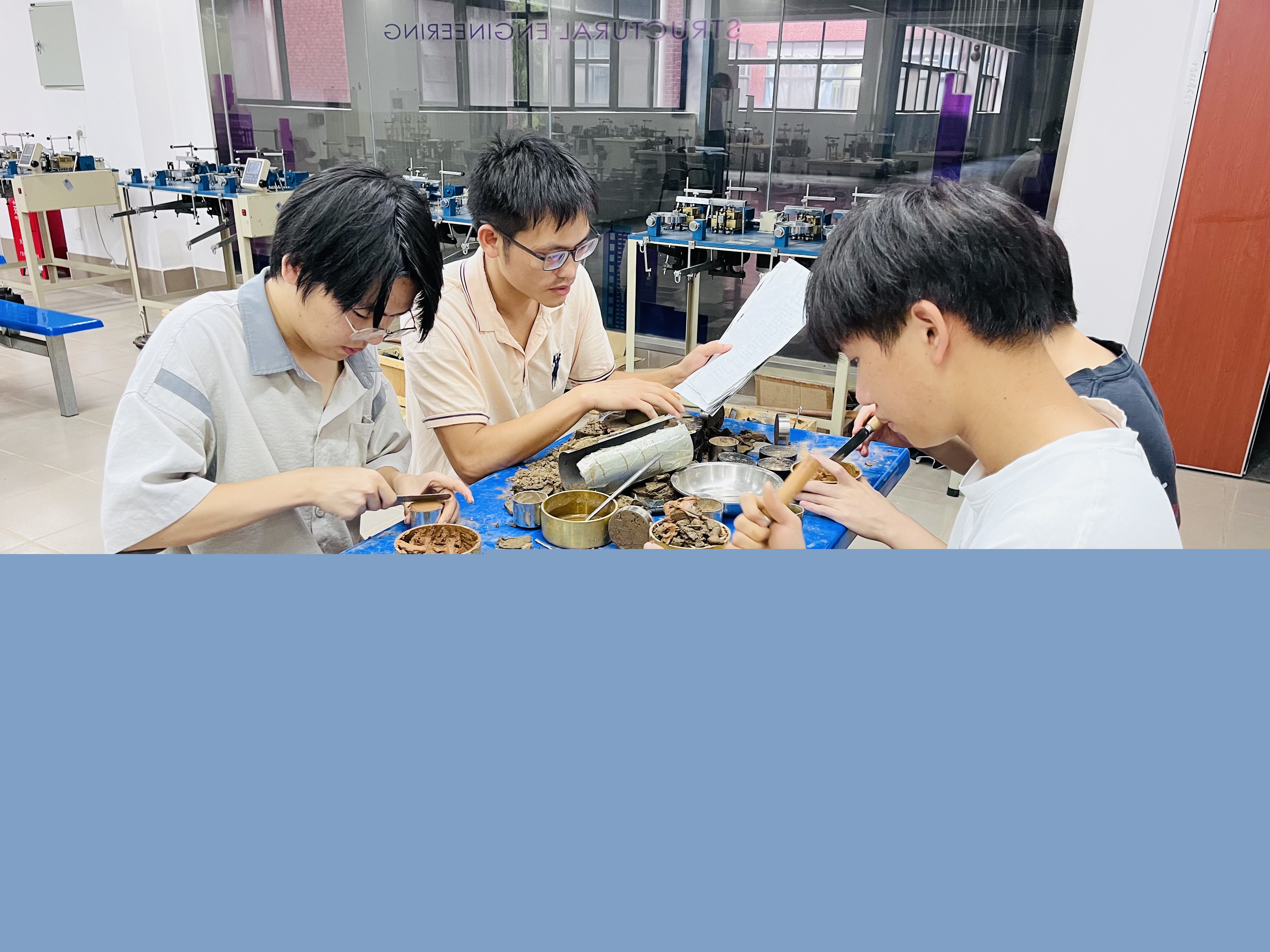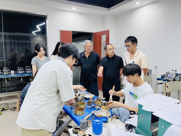 實踐操作是本次競賽的重要環(huán)節(jié),也是參賽學子們的重點備賽方向。三位學生在兩位老師的指導下,針對土工試驗模塊中的多個關鍵項目展開專項訓練,涵蓋土樣開樣、密度試驗、含水率試驗、界限含水率試驗(液塑限聯(lián)合測定法)、及數(shù)據(jù)處理等內容。這些試驗均為地質工程勘察的核心環(huán)節(jié),學生們認真對待每一次試驗操作,從儀器設備的調試到樣本的采集與處理,再到數(shù)據(jù)的記錄與分析,每一個步驟都嚴謹細致,力求做到精益求精。