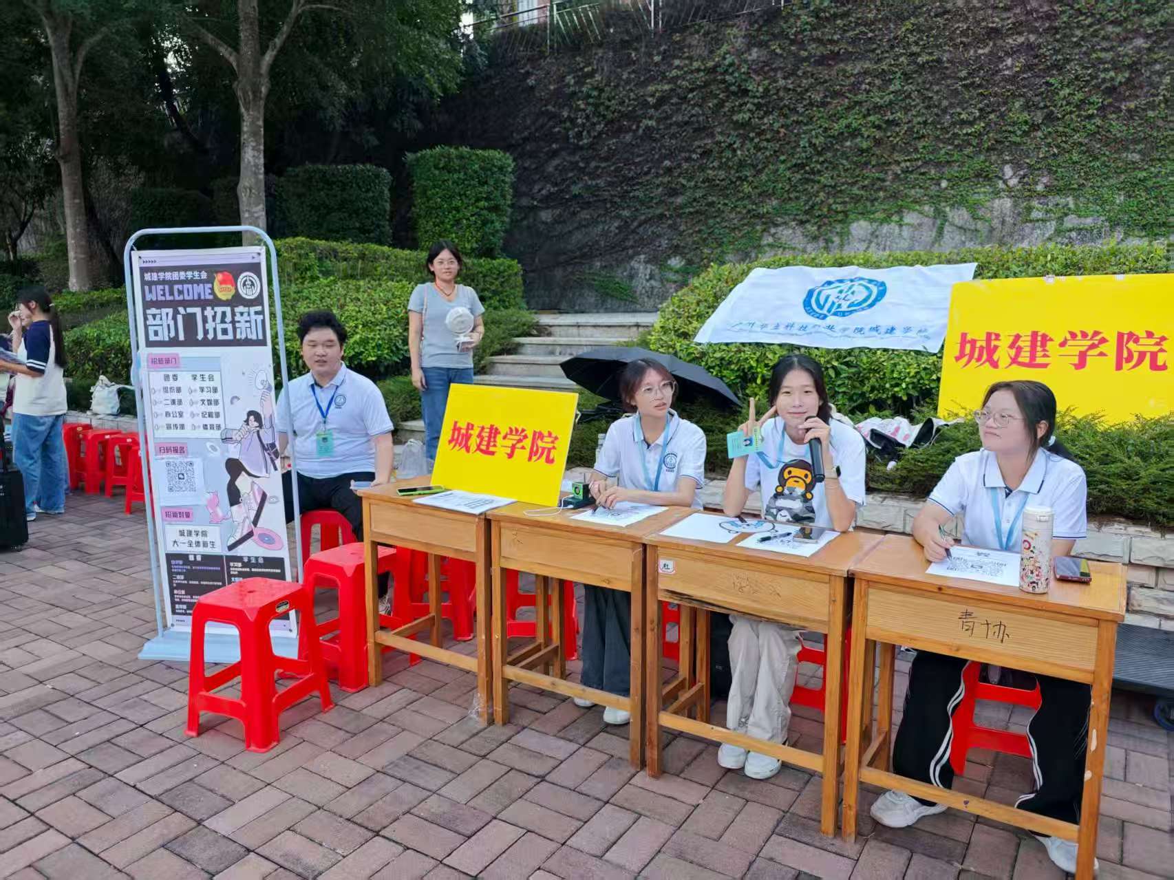 2025 年 9 月 15 日,城建學(xué)院團(tuán)委學(xué)生會(huì)在圖書(shū)館樓下小廣場(chǎng)正式舉行招新活動(dòng)。學(xué)院黨總支書(shū)記、副院長(zhǎng)吳毅強(qiáng),團(tuán)委書(shū)記楊威豪及全體輔導(dǎo)員老師來(lái)到招新現(xiàn)場(chǎng),了解招新組織情況,并與工作人員、咨詢學(xué)生親切交流,詳細(xì)詢問(wèn)團(tuán)學(xué)各部門招新需求、報(bào)名人數(shù)及學(xué)生意向偏好,為招新活動(dòng)的順利推進(jìn)提供指導(dǎo)。
