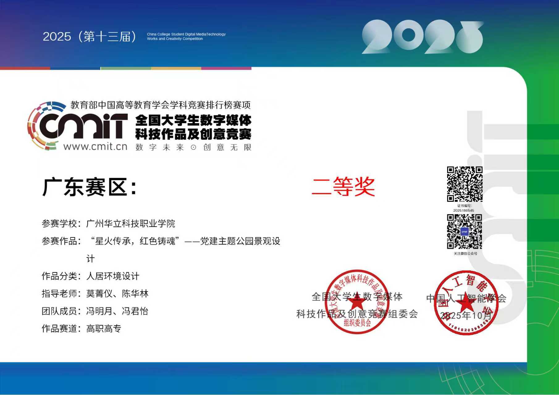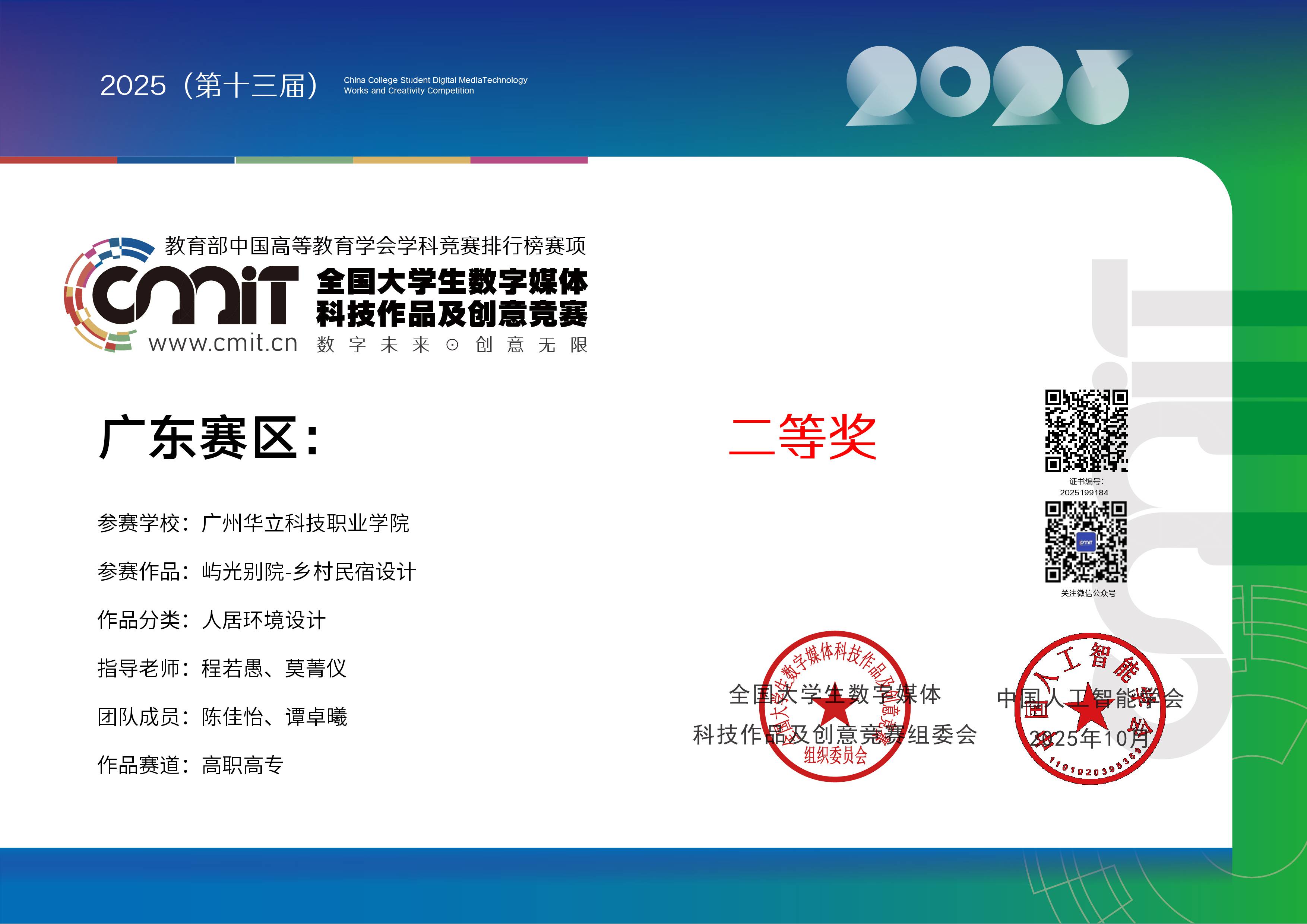 近日,備受全國高校關(guān)注的第 13 屆全國大學(xué)生數(shù)字媒體科技作品及創(chuàng)意競賽圓滿落幕。城建學(xué)院師生憑借扎實的專業(yè)功底、創(chuàng)新的設(shè)計理念與出色的實踐能力,在全國眾多參賽隊伍中脫穎而出,最終斬獲全國總決賽三等獎2項,廣東省賽區(qū)二等獎2項及三等獎2項的優(yōu)異成績,充分展現(xiàn)了學(xué)院在數(shù)字媒體教育領(lǐng)域的育人成果與學(xué)科實力。本次大賽是由全國大學(xué)生數(shù)字媒體科技作品及創(chuàng)意競賽組委會主辦,旨在搭建高校數(shù)字媒體專業(yè)師生交流學(xué)習(xí)的平臺,激發(fā)大學(xué)生的創(chuàng)新思維與科技創(chuàng)造力,推動數(shù)字媒體技術(shù)與創(chuàng)意設(shè)計在各行業(yè)的融合應(yīng)用。大賽已連續(xù)舉辦13屆,是為藝術(shù)設(shè)計領(lǐng)域的高水平知名賽事,也是我院師生積極參與的重要專業(yè)競賽之一。