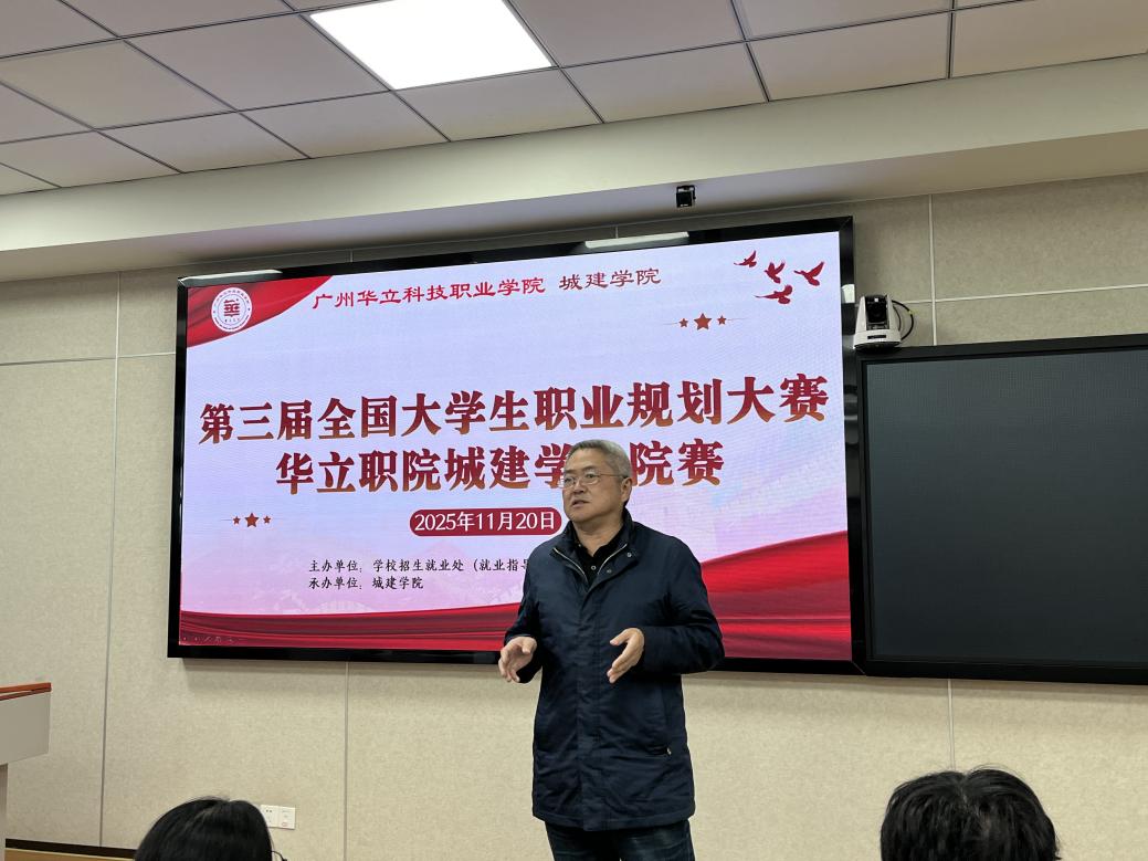 大賽伊始,城建學院院長徐耀鑒教授發(fā)表致辭。他指出,職業(yè)規(guī)劃是學生成長成才的“導航圖”,更是學院人才培養(yǎng)工作的重要抓手。希望同學們通過本次大賽找準職業(yè)定位、明確發(fā)展方向,將個人理想與行業(yè)發(fā)展、國家需求緊密結(jié)合。同時,他鼓勵全體參賽選手以賽促學、以賽促練,在交流比拼中提升職業(yè)素養(yǎng),為未來職場發(fā)展筑牢根基,并預祝大賽取得圓滿成功。