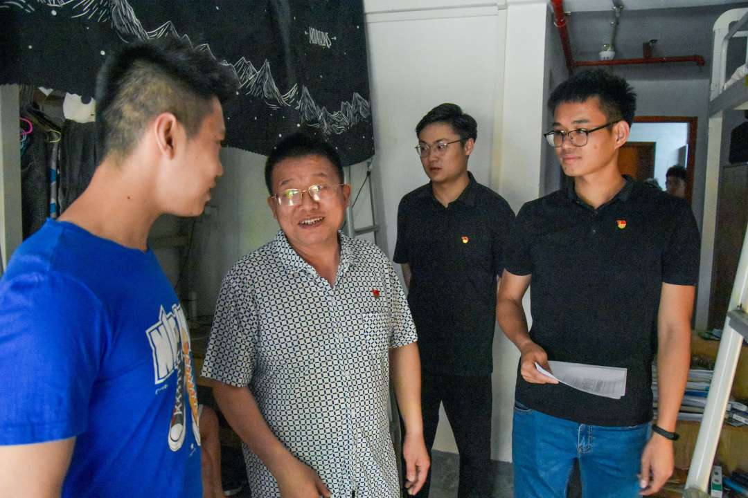 走訪學(xué)生黨員宿舍過程中,曾祥彪書記與學(xué)生黨員進(jìn)行了面對面的交流,詢問并了解了他們近期生活與學(xué)習(xí)情況,對學(xué)生黨員提出了要一直以優(yōu)秀黨員的標(biāo)準(zhǔn)嚴(yán)格要求自己,在學(xué)習(xí)與生活中要時刻謹(jǐn)記黨員身份,以身作則,樹立標(biāo)桿,率先示范,展現(xiàn)黨員形象的建議。并指出平時對宿舍成員的學(xué)習(xí)和生活也要進(jìn)行幫助,督促同學(xué)們共同進(jìn)步,努力營造宿舍積極向上的學(xué)習(xí)氛圍,創(chuàng)建文明和諧的學(xué)習(xí)、生活環(huán)境。