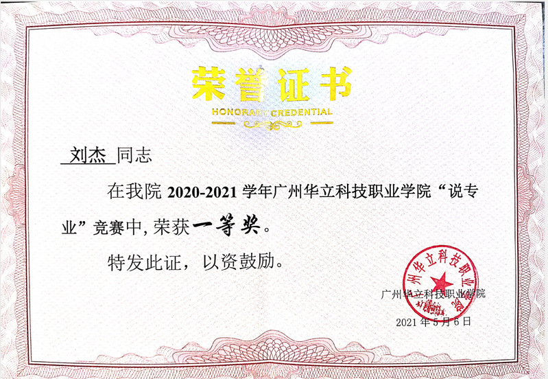2020-2021學(xué)年廣州華立科技職業(yè)學(xué)院“說專業(yè)”競賽在2021年4月28日正式落下帷幕,8個二級學(xué)院選送的參賽老師,參加了這次別開生面的比賽。本次比賽教務(wù)處組織牽頭,由馬龍海執(zhí)行校長擔(dān)任評審組組長,學(xué)校領(lǐng)導(dǎo)專家、二級學(xué)院院長以及職能部門負(fù)責(zé)人等組成評審團(tuán),對賽事進(jìn)行了專業(yè)而嚴(yán)謹(jǐn)?shù)脑u審工作。最終經(jīng)過公正嚴(yán)謹(jǐn)?shù)某煽兘y(tǒng)計,我院劉杰老師獲得“說專業(yè)”競賽一等獎。