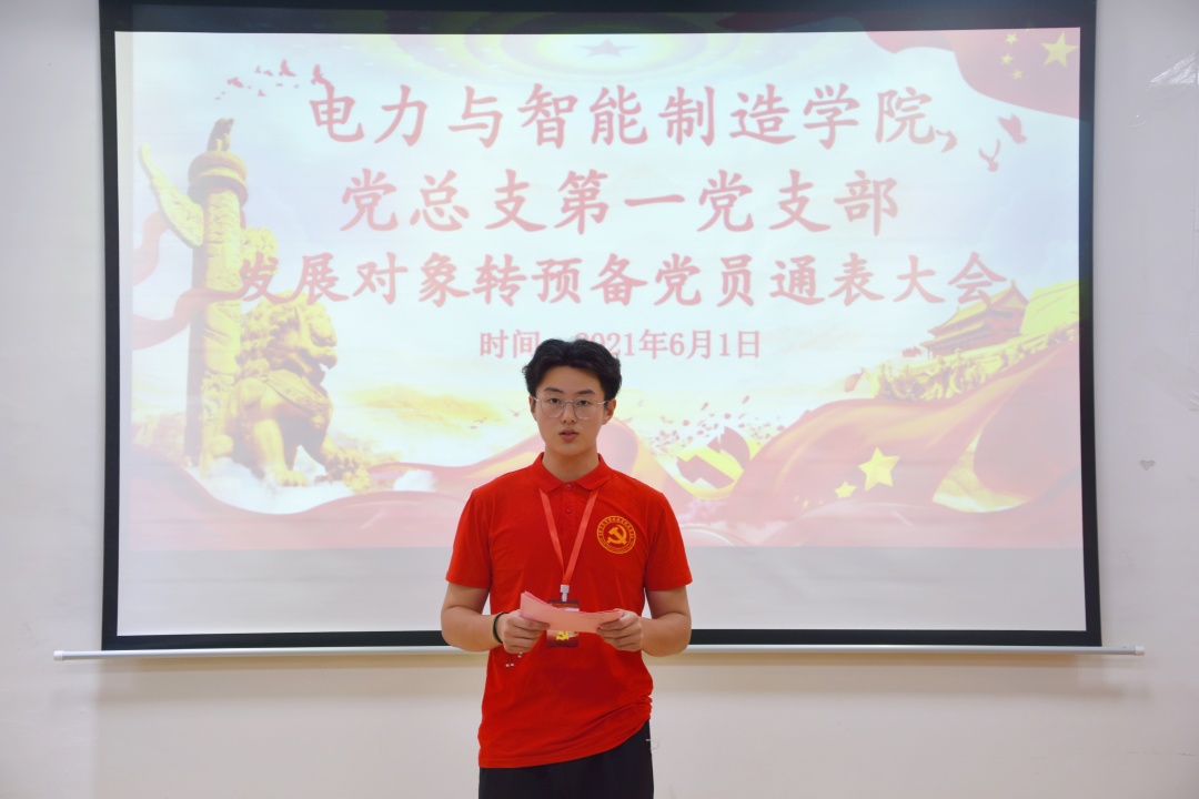 2021年6月1日下午,電力與智能制造學院黨總支第一黨支部在科技樓五樓會議室舉行2021年上半年預(yù)備黨員通表大會,大會討論發(fā)展陸建明教師為中共預(yù)備黨員事宜。