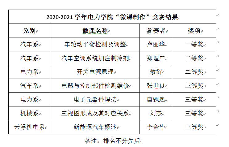 2020-2021學年電力與智能制造學院“微課制作”競賽于2021年6月28日結(jié)束,各系選送的7名老師參加了本次比賽。本次比賽由王秀敏院長、程良鴻教授、孫學雁教授、張志友教授、吳艷蘊副教授等組成評委組,對賽事進行了嚴謹?shù)脑u審工作。最終確定對本次的“微課制作”競賽結(jié)果公布如下: