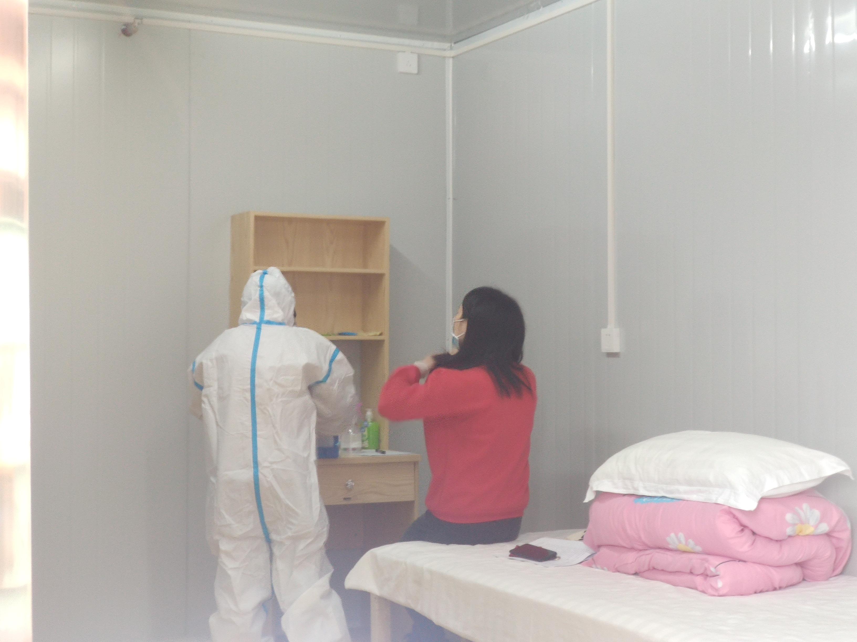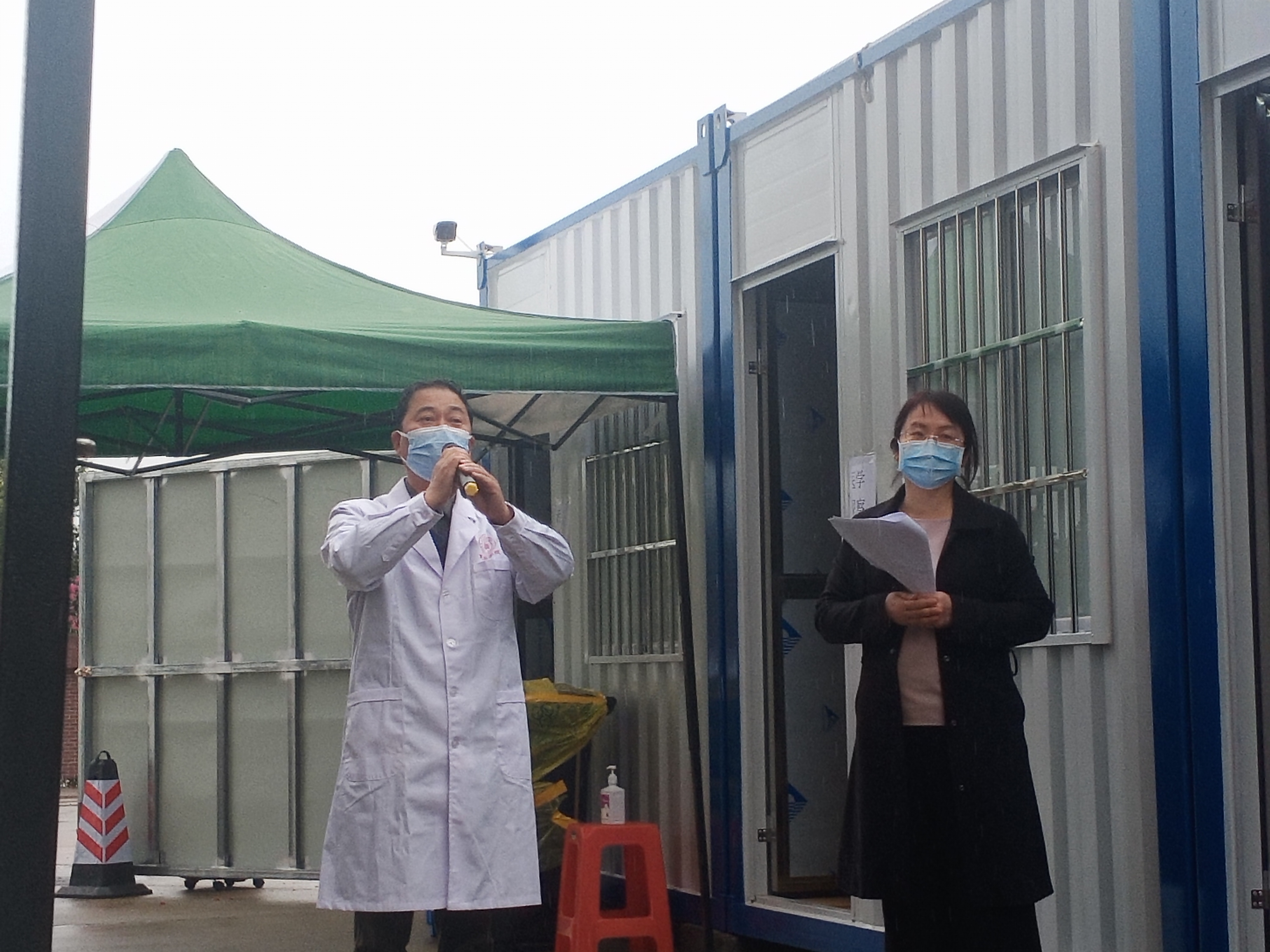 教師:不用著急,聽老師說,宿舍有洗手間嗎?用水方便嗎?都有,那好,您現(xiàn)在照著我說的去做,您就待在宿舍里,一步都不要離開,您立即關上宿舍門窗,我找醫(yī)生馬上過來幫你看病。等下你要將你最近去過什么地方,做了什么檢查,詳細告訴醫(yī)生。你戴好口罩,待在宿舍休息,多喝溫水,等醫(yī)生到來好嗎?