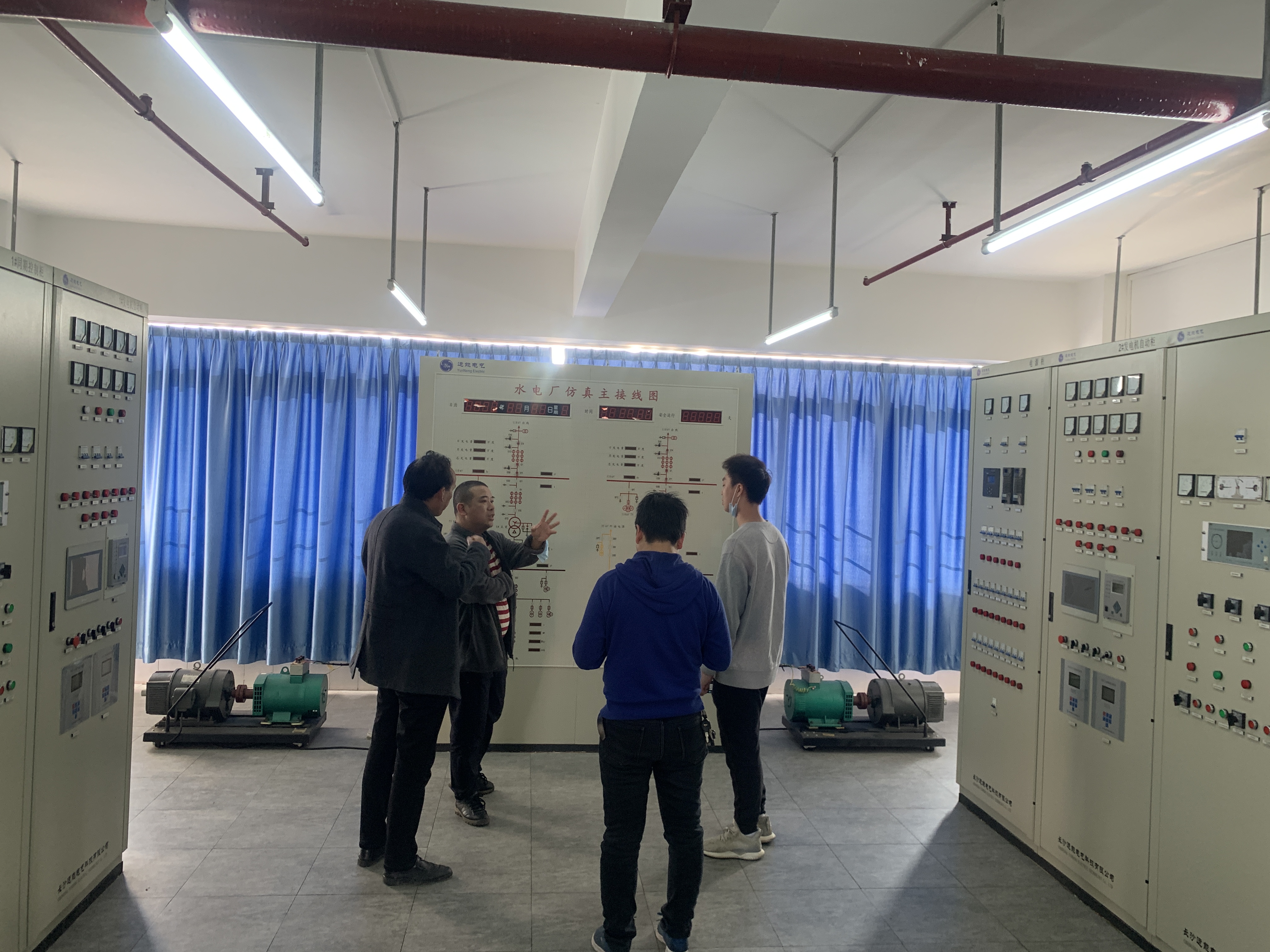 講座結(jié)束后,劉禮安主任和實(shí)訓(xùn)場管理員陪同潘雄參觀了電力專業(yè)的實(shí)訓(xùn)室。