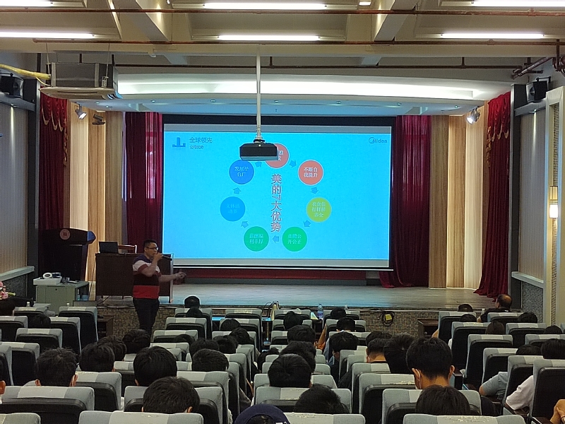 美的威靈、美的美芝的校企辦主任杜向凡與勞誠欽精心準(zhǔn)備講座材料,向?qū)W生展示了行業(yè)現(xiàn)狀、企業(yè)文化、就業(yè)市場形勢、薪資待遇以及校企合作培養(yǎng)模式等相關(guān)信息。通過企業(yè)的宣講,學(xué)生對企業(yè)有了更直觀的了解,對頂崗實(shí)習(xí)方向有了更明確的選擇和計(jì)劃。