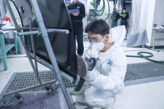 本次比賽要求選手在規(guī)定時間內(nèi)完成指定操作任務(wù),從舊漆膜去除、板件修復(fù)、原子灰施涂及板件噴涂。比賽過程中,選手們對各個環(huán)節(jié)的操作井然有序、條理清晰,節(jié)奏張弛有度、游刃有余,充分展現(xiàn)著個人素質(zhì)和技能水平。