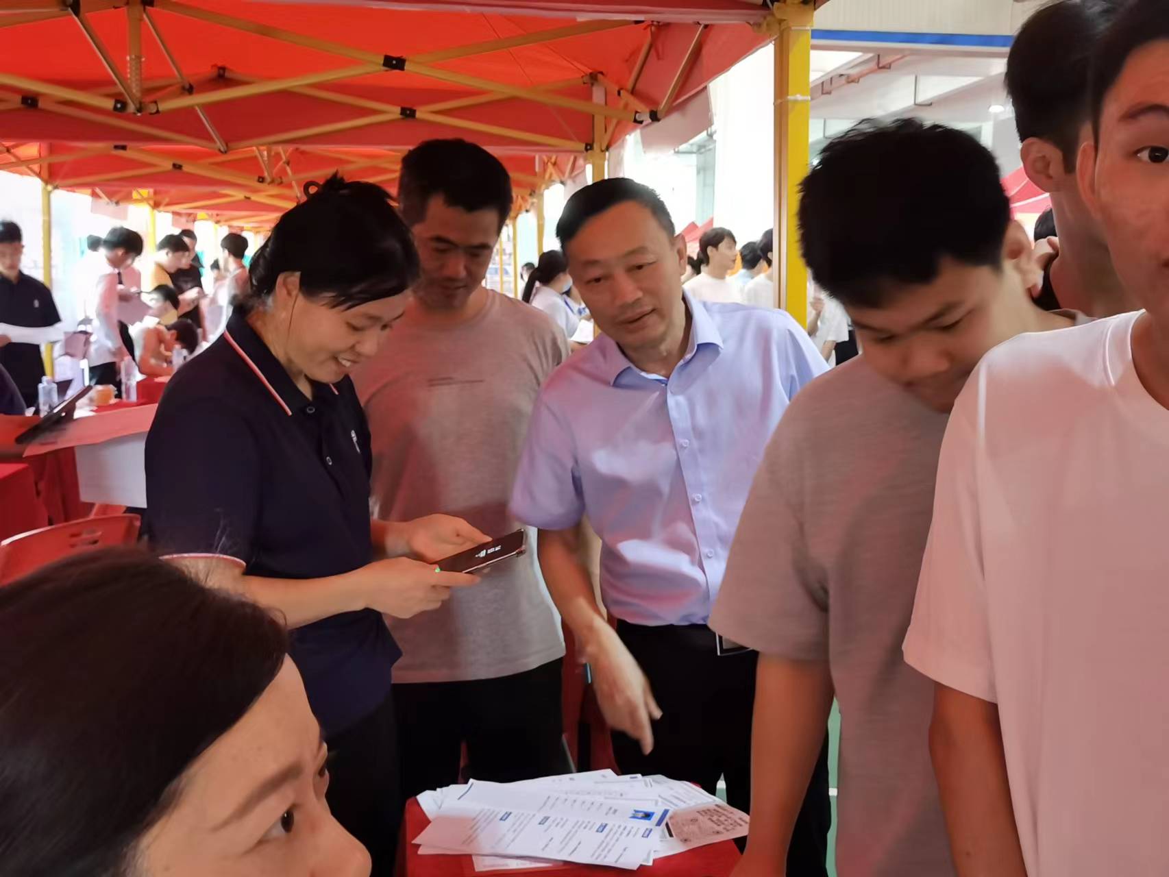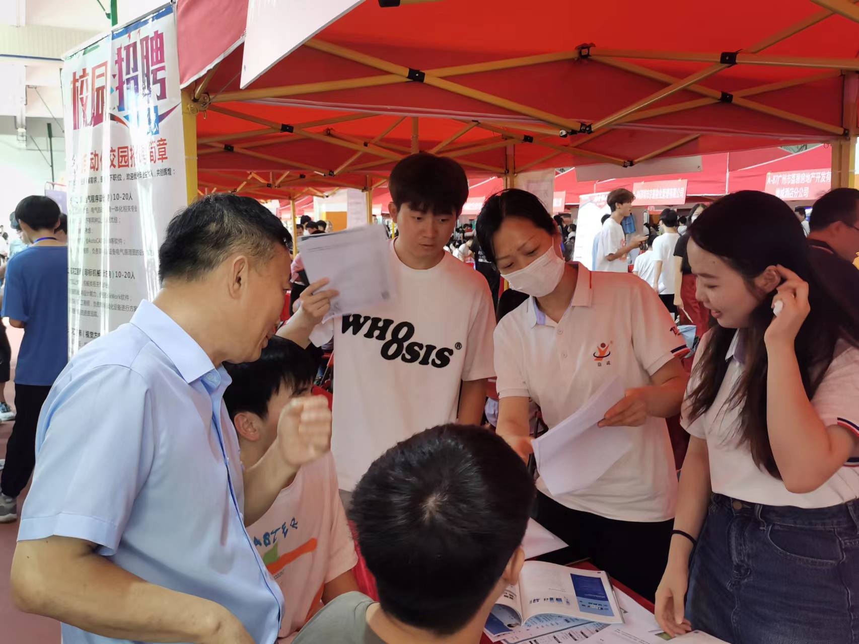 應聘求職是大學三年學習成果的檢驗,也是人生新篇章的開啟。電力與智能制造學院院長王秀敏、黨總支書記孫令真、黨總支專職副書記鄭理廣都非常關心同學們應聘情況,與多家企業(yè)交談互動,了解到各家企業(yè)的人才招聘要求,為求職學生現(xiàn)場答疑,分析推薦合適的工作崗位。
