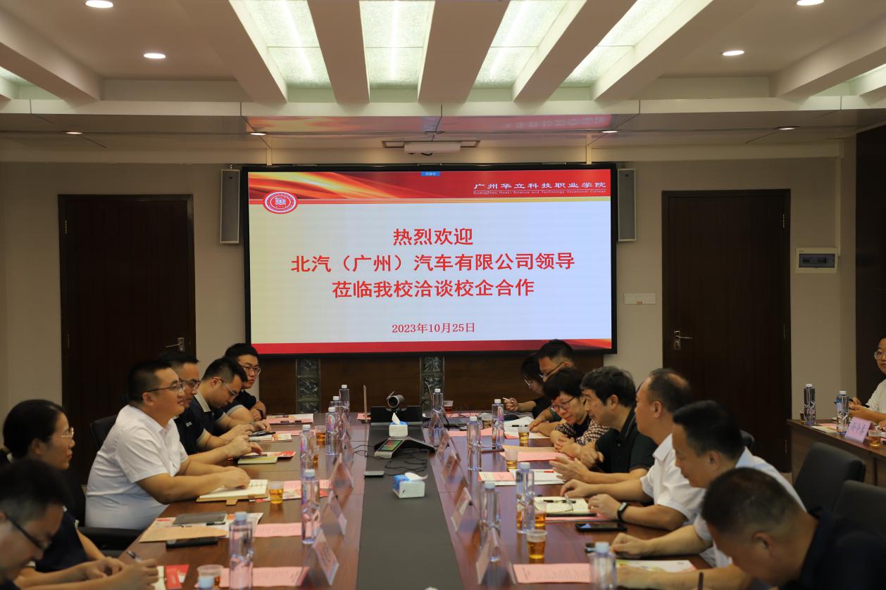 會(huì)上,易健民校長(zhǎng)代表學(xué)校對(duì)北汽(廣州)汽車有限公司黨委書記、總經(jīng)理朱百慶一行的來(lái)訪表示熱烈歡迎。易健民校長(zhǎng)指出,產(chǎn)教融合、校企合作是高等職業(yè)教育的基本辦學(xué)形式,也是學(xué)校高質(zhì)量發(fā)展的必由之路。近年來(lái),學(xué)校實(shí)施“規(guī)范達(dá)標(biāo)、品牌提升、產(chǎn)教融合、特色發(fā)展”戰(zhàn)略,在人才培養(yǎng)、科研及社會(huì)服務(wù)方面均取得了長(zhǎng)足進(jìn)步。北汽(廣州)汽車有限公司作為大型國(guó)企,發(fā)展勢(shì)頭良好,科技創(chuàng)新能力突出。希望盡快推進(jìn)雙方在人才培養(yǎng)、教科研、社會(huì)服務(wù)、黨建思政等方面的全面合作。陳良聲書記提出,希望能夠加強(qiáng)校企之間黨建聯(lián)系,探索以黨建引領(lǐng)“產(chǎn)教融合、校企合作”的新路徑,充分發(fā)揮企業(yè)的技術(shù)優(yōu)勢(shì),校企同向發(fā)力,為實(shí)現(xiàn)中國(guó)式現(xiàn)代化、建設(shè)教育強(qiáng)省貢獻(xiàn)力量。