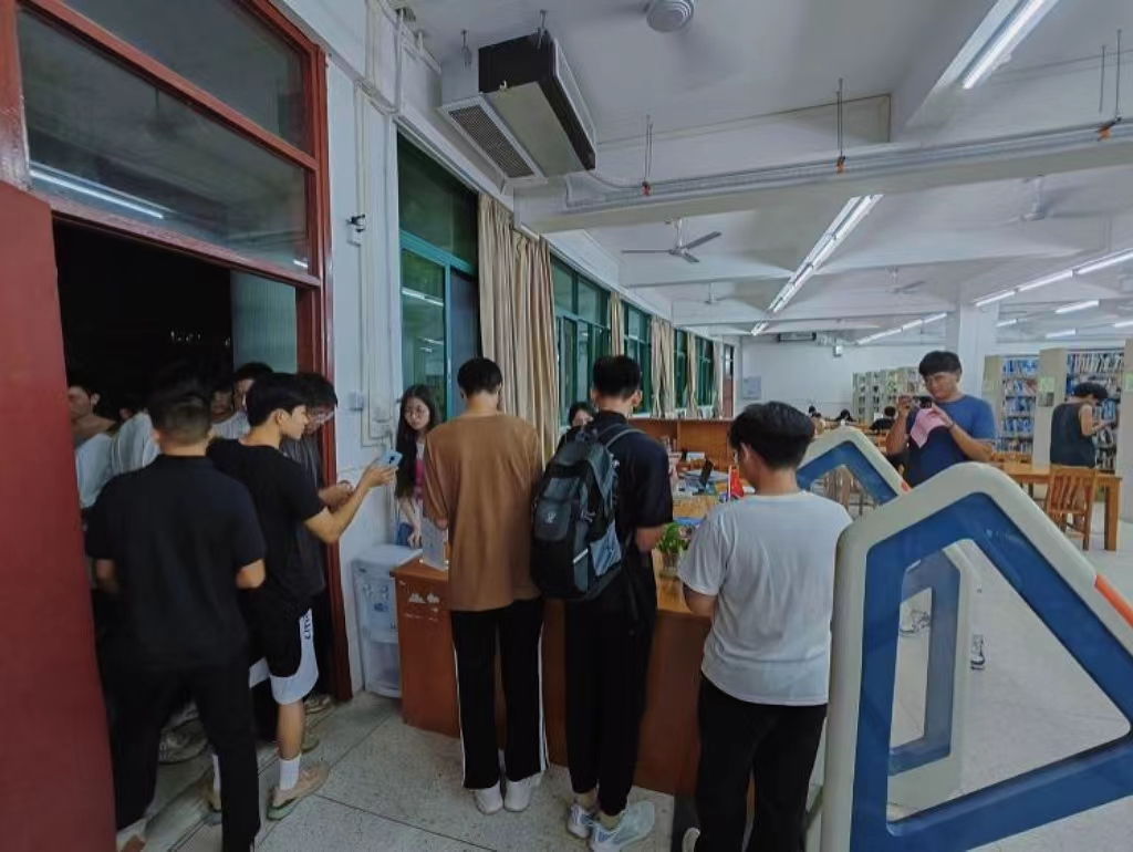 “三十本書閱讀工程”啟動儀式結(jié)束后,同學(xué)們紛紛走進圖書館借書。