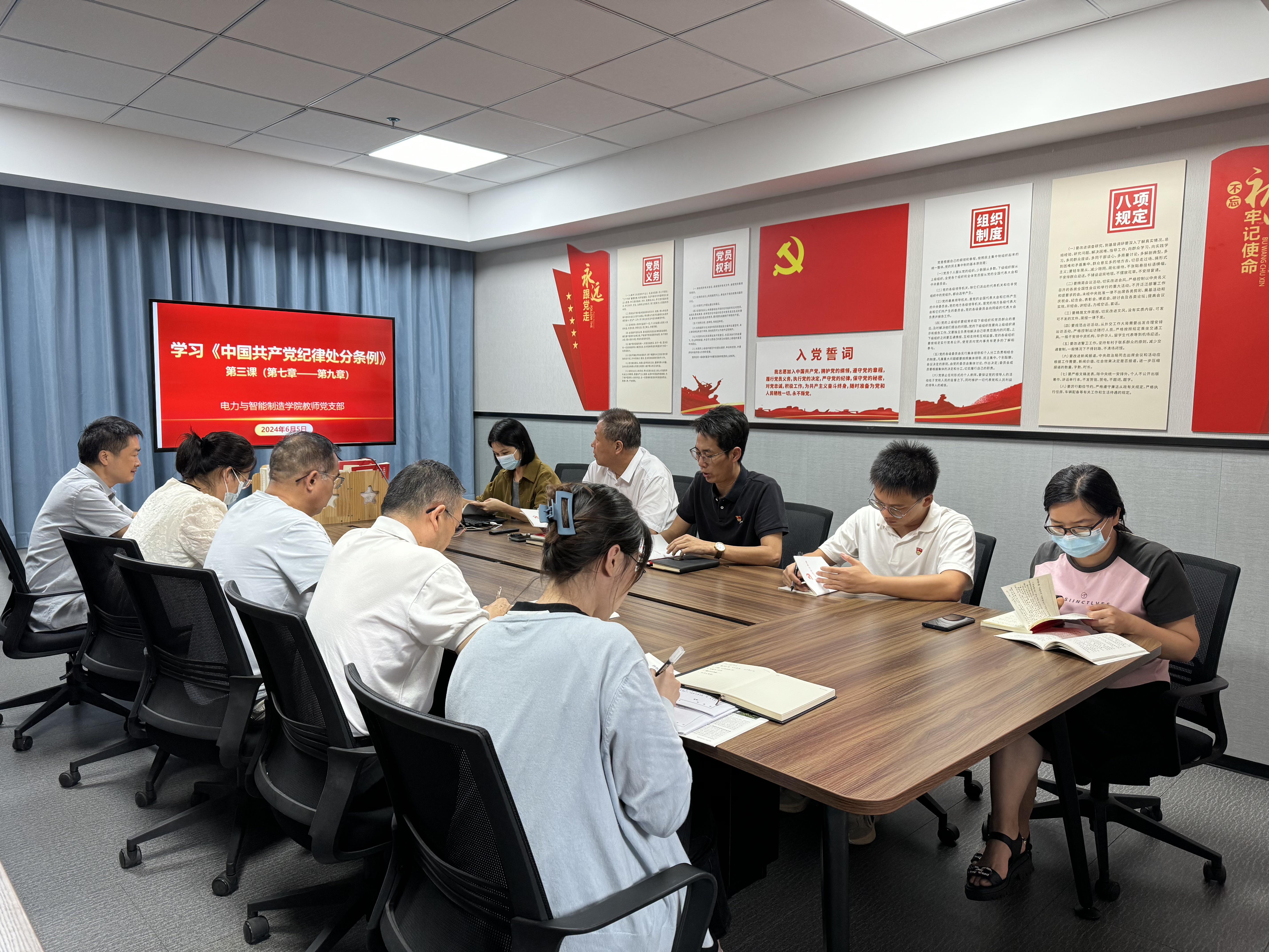 本節(jié)課,由電力與智能制造學(xué)院教師黨支部書記孫令真同志領(lǐng)學(xué)《中國(guó)共產(chǎn)黨紀(jì)律處分條例》中第七章至第九章的內(nèi)容。