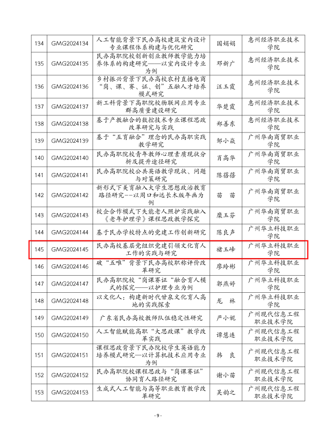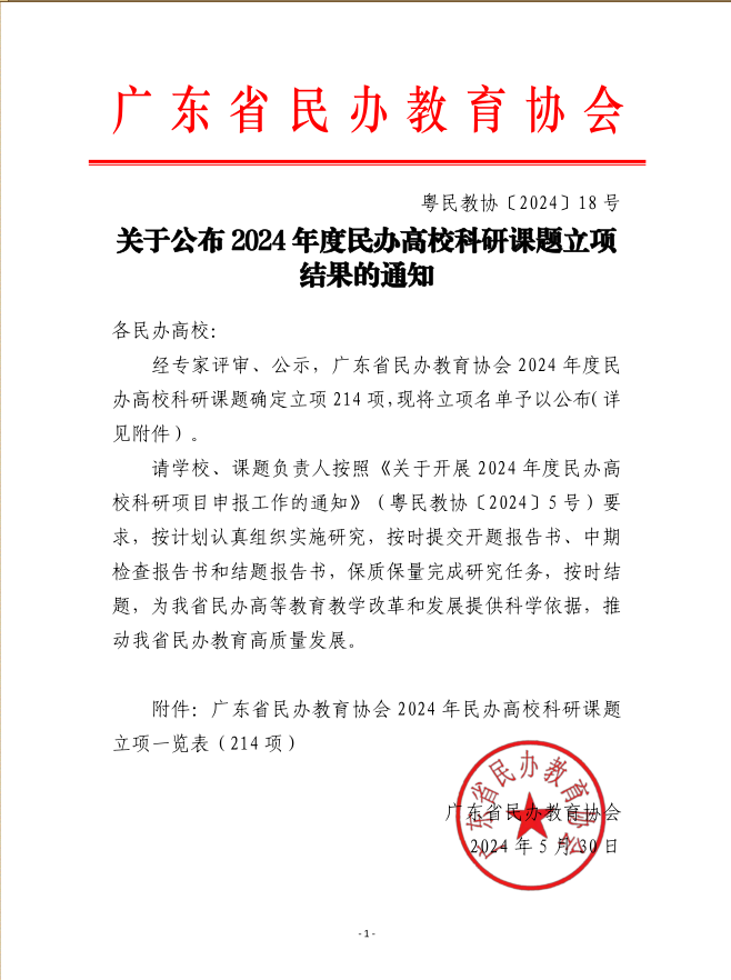 近日,廣東省民辦教育協(xié)會(huì)公布了《2024年度民辦高??蒲姓n題立項(xiàng)結(jié)果的通知》,我院申報(bào)的“民辦高?;鶎狱h組織以黨建引領(lǐng)文化育人工作的實(shí)踐與研究”項(xiàng)目成功立項(xiàng)。