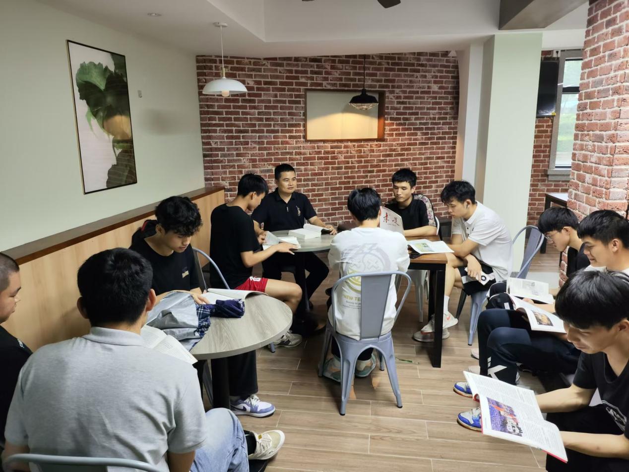 作為電力與智能制造學院的黨員教師陸建明,5月27日走進學校一站式學生社區(qū)的書吧,組織同學們進行讀書分享。