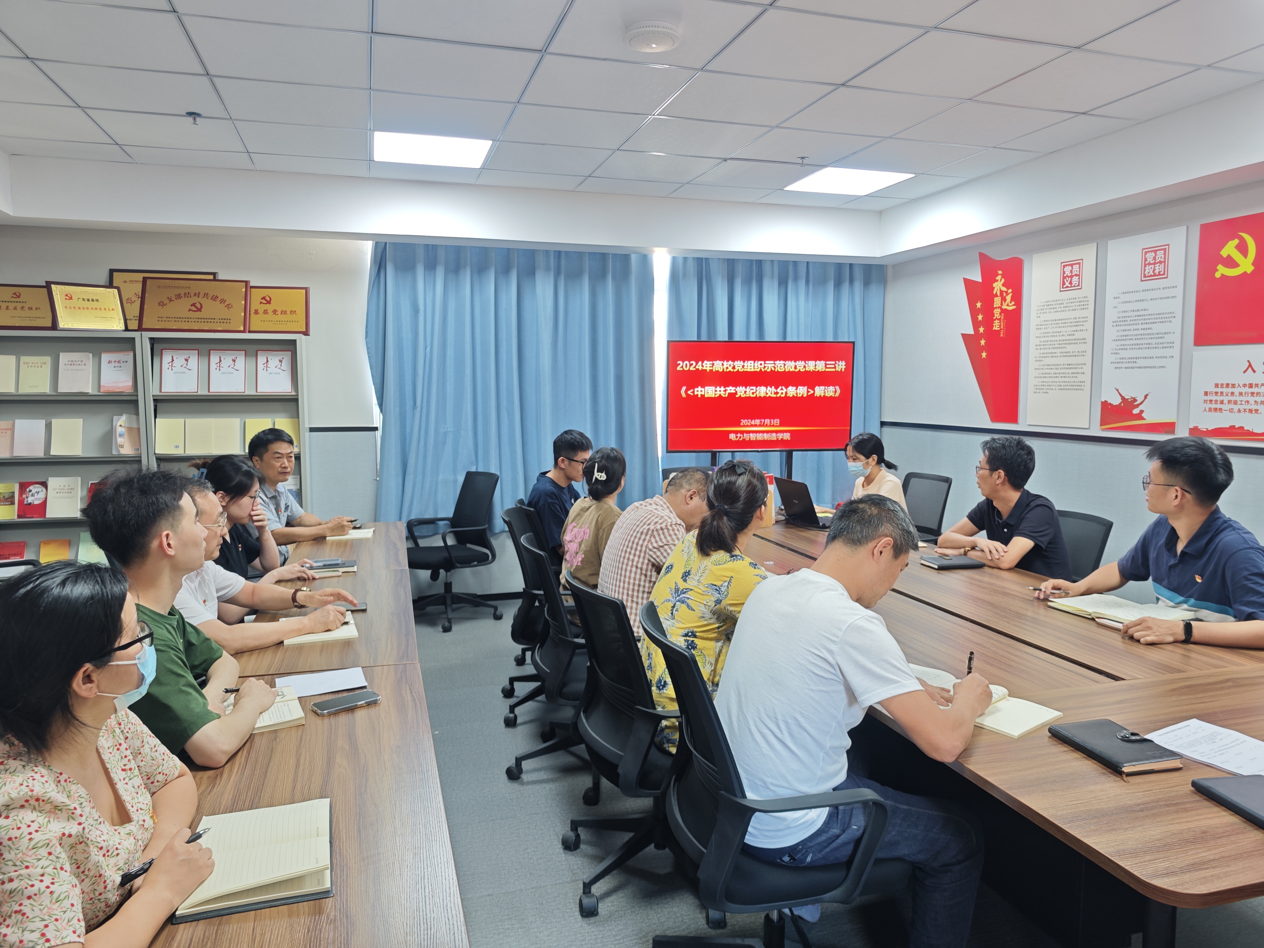 7月3日下午,電力與智能制造學(xué)院黨總支教師黨支部在西1-514會議室組織黨員學(xué)習(xí)觀看2024年高校黨組織示范微黨課第三講《<中國共產(chǎn)黨紀(jì)律處分條例>解讀》。教師黨支部全體黨員參加了會議,會議由教師黨支部孫令真書記主持。