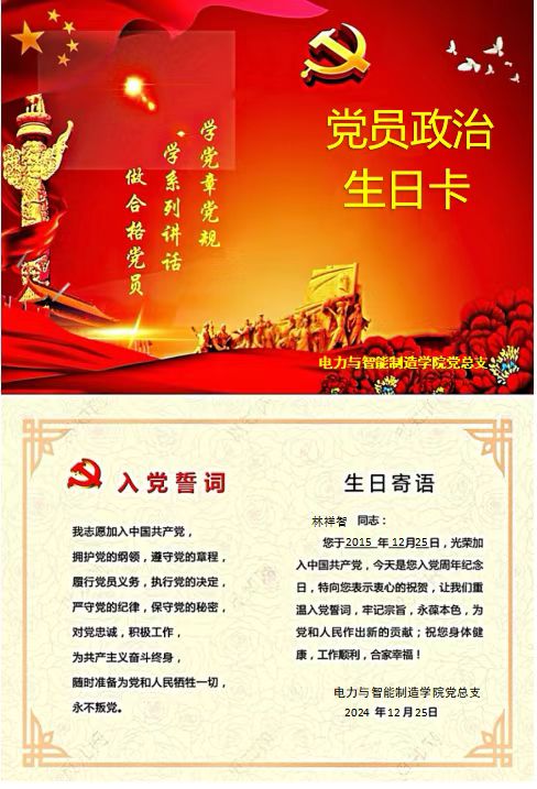 時(shí)光荏苒,如白駒過(guò)隙,在忙碌與奮進(jìn)中,12月25日迎來(lái)了屬于自己的一個(gè)特殊日子——“政治生日”,作為電力與智能制造學(xué)院黨總支教師黨支部的一名教師黨員林祥智,在這特殊的時(shí)刻,不僅是對(duì)個(gè)人黨員政治生涯的一次回顧,更是黨性修養(yǎng)再度升華的重要契機(jī)。