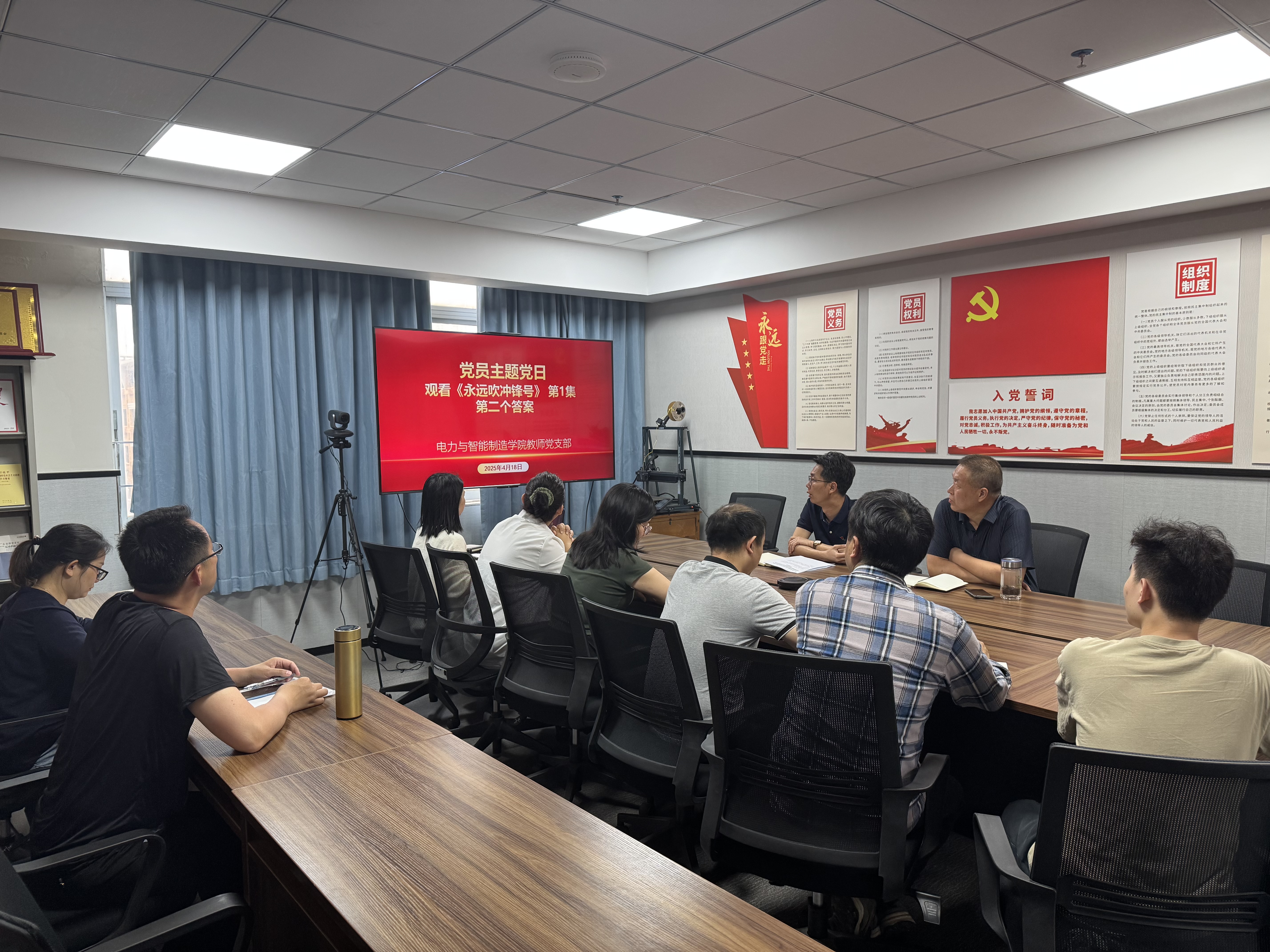 為深入貫徹中央八項(xiàng)規(guī)定精神學(xué)習(xí)教育,推進(jìn)作風(fēng)建設(shè)常態(tài)化長(zhǎng)效化,4月18日下午,電力與智能制造學(xué)院教師黨支部開展主題黨日活動(dòng)——觀看警示教育片“《永遠(yuǎn)吹沖鋒號(hào)》專題片第1集——《第二個(gè)答案》”,學(xué)院黨總支書記褚玉峰及教師黨支部沒有課的黨員參加了活動(dòng),活動(dòng)由教師黨支部書記孫令真主持。