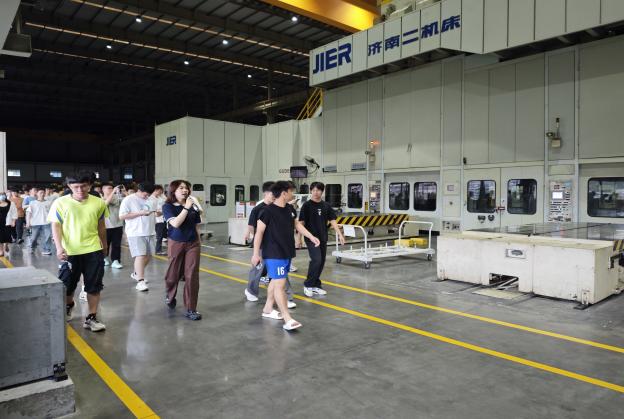 在講解員的引導(dǎo)下,師生們依次走進(jìn)沖壓、焊裝、總裝等工藝車間,了解汽車制造從零部件到整車的全流程。目睹高度自動(dòng)化生產(chǎn)線的機(jī)械韻律,凝視全智能機(jī)器人焊接的火花,駐足嚴(yán)格質(zhì)量保障體系執(zhí)行的現(xiàn)場(chǎng),同學(xué)不僅見證了現(xiàn)代汽車制造的科技實(shí)力,更被“行有道·達(dá)天下”的企業(yè)文化于“奮力拼搏、團(tuán)結(jié)協(xié)作、知難而進(jìn),志在必得”的企業(yè)精深深觸動(dòng)。正是新時(shí)代產(chǎn)業(yè)工人每個(gè)技術(shù)突破的累積,構(gòu)筑起現(xiàn)代化產(chǎn)業(yè)體系的基石;正是每道精益求精的制造工藝,書寫著技能報(bào)國(guó)的青春答卷。