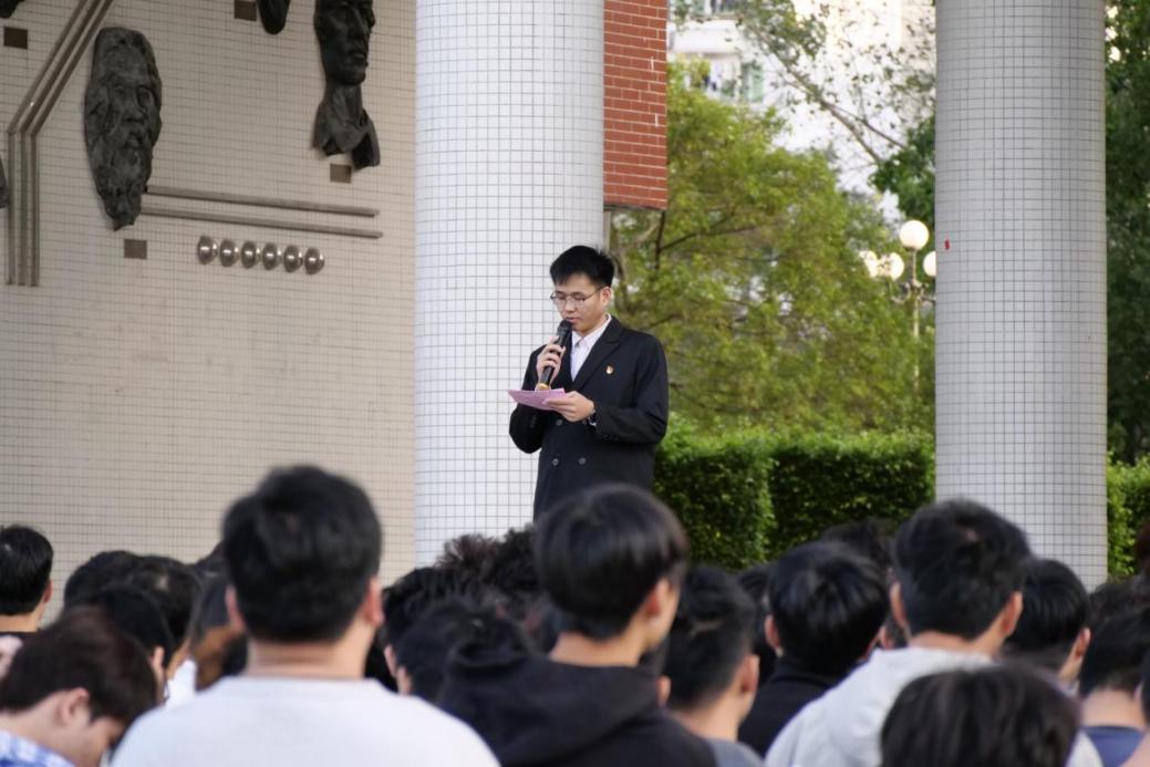 升旗儀式結(jié)束后,學(xué)院黨總支書記褚玉峰以“守交通平安防線,筑青春成長根基”為主題,進(jìn)行了國旗下講話。