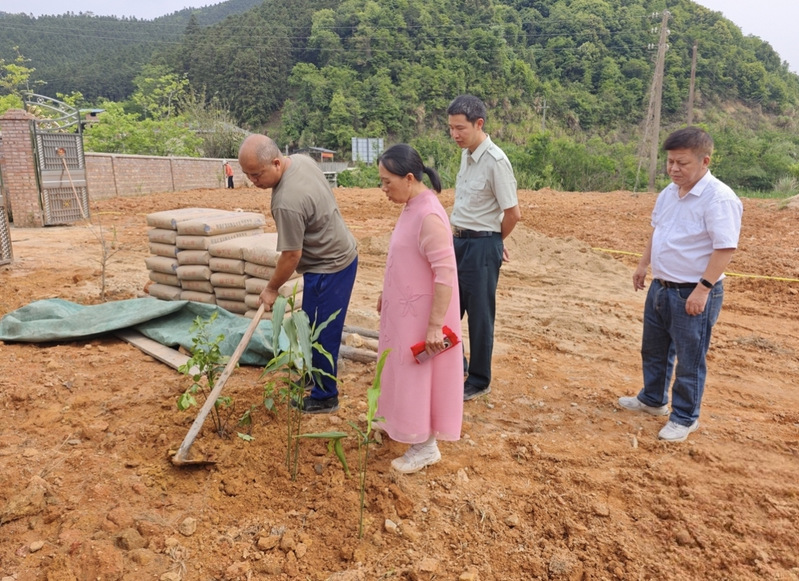 健康學(xué)院農(nóng)村科技特派員團(tuán)隊查看種苗試種情況