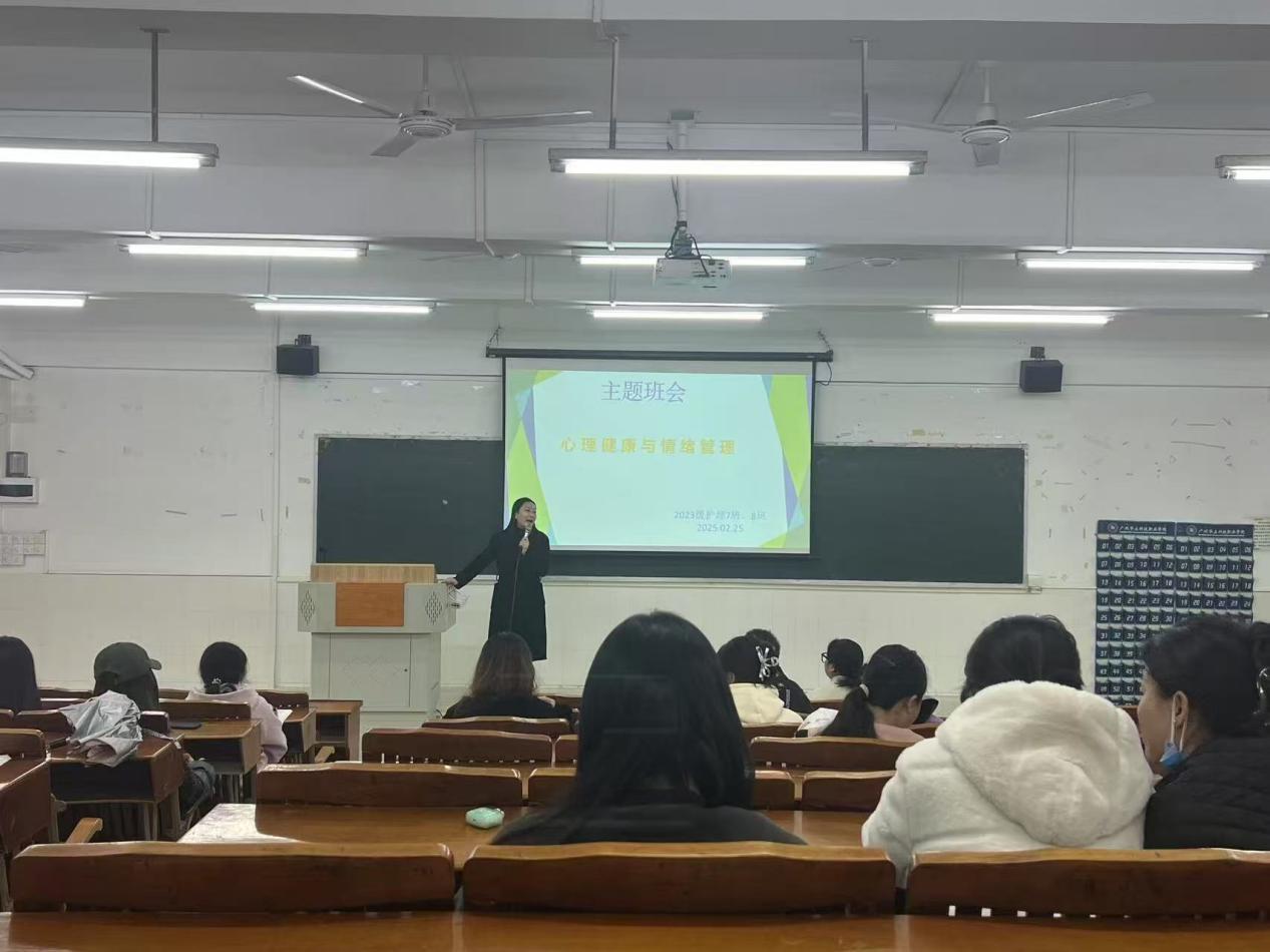此次班會由輔導員開展,通過“情緒管理的重要性”“常見心理和精神疾病引起的情緒問題”“情緒管理的方法”三個方面開展