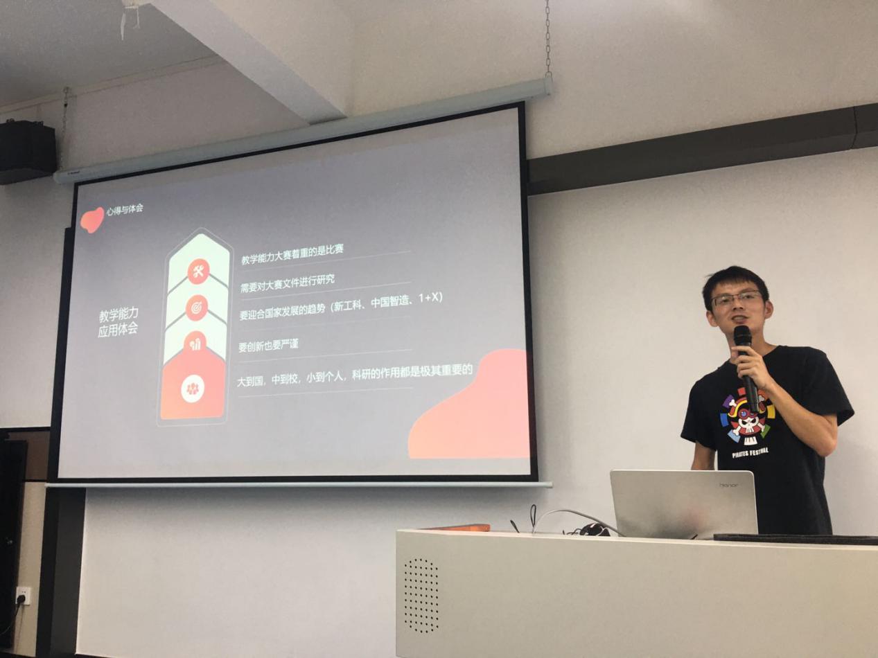 對(duì)“教學(xué)能力大賽”提出了自己個(gè)人的觀點(diǎn),認(rèn)為教學(xué)能力大賽看重的是比賽,要迎合國(guó)家發(fā)展的趨勢(shì)(新工科、中國(guó)制造、1+X),既要?jiǎng)?chuàng)新也要嚴(yán)謹(jǐn),要做到大到國(guó),中到校,小到個(gè)人,科研的作用都極其重要的。