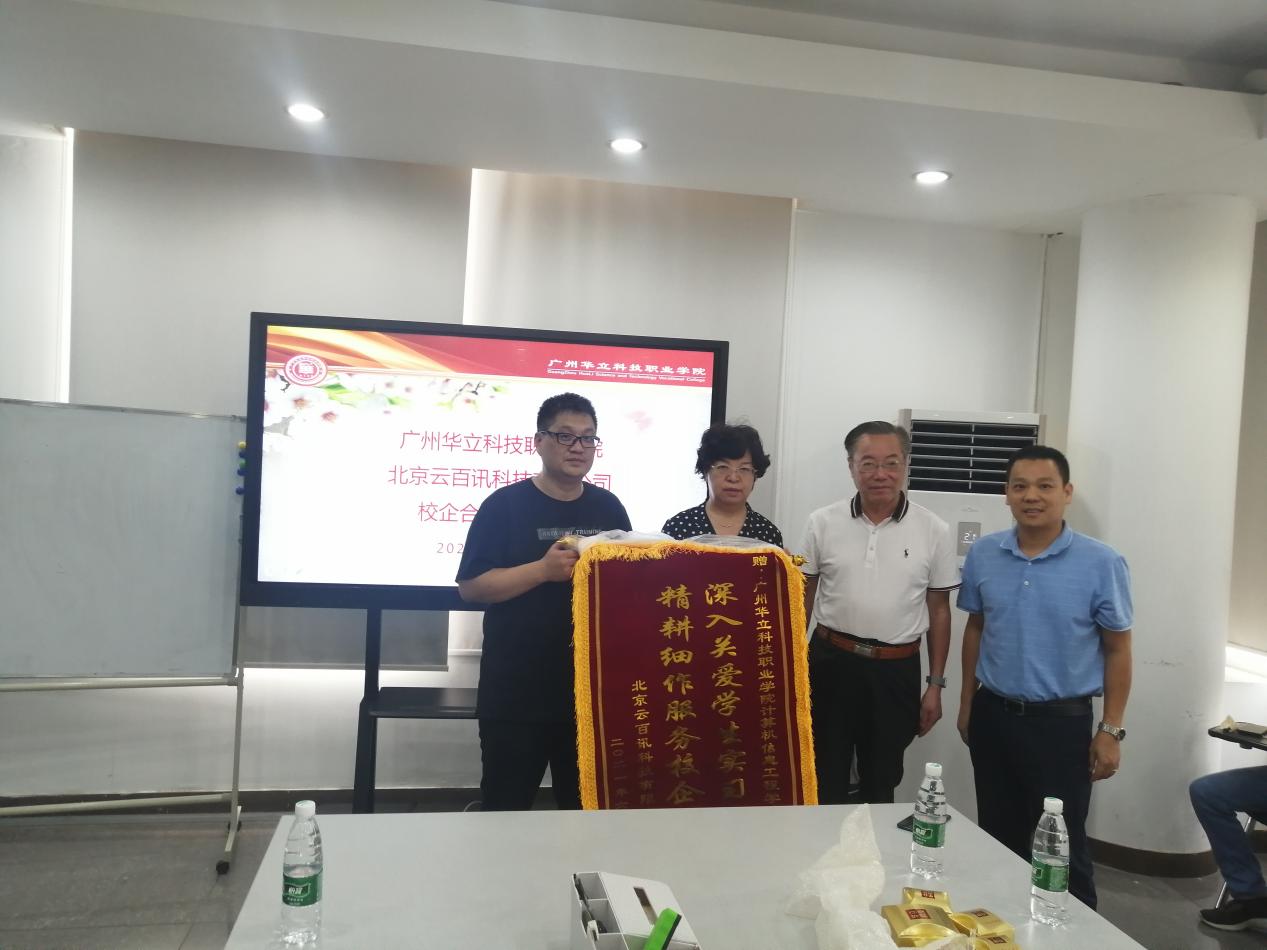 為深化產(chǎn)教融合、校企合作,探索校企合作的長效機制,2021年9月13日上午,廣州華立科技職業(yè)學(xué)院與北京云百訊科技有限公司校企合作授牌儀式在云百訊佛山分公司舉行,我校黨委林偉健書記、計算機學(xué)院院長王建華教授、校外副主任蔡文欽、干事黃志強老師、云百訊公司分管趙金華副經(jīng)理、業(yè)務(wù)部經(jīng)理焦經(jīng)理及我院2019級實習(xí)生代表參加了此次授牌儀式。