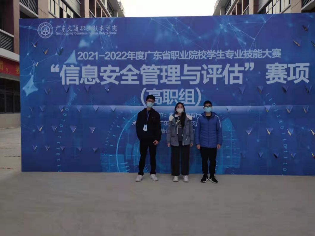 2022年2月28日,由廣東省教育廳主辦的2021-2022年度全國(guó)職業(yè)院校技能大賽高職組“信息安全管理與評(píng)估”賽項(xiàng)在廣東交通技術(shù)職業(yè)學(xué)院舉行。計(jì)算機(jī)信息工程學(xué)院鐘明、閔小翠老師指導(dǎo)的20計(jì)算機(jī)網(wǎng)絡(luò)技術(shù)2班李金林、李華鑄、鄧麗三位同學(xué)與來(lái)自全省47支代表隊(duì)同臺(tái)競(jìng)技,經(jīng)過(guò)一天的激烈角逐,最終獲得省賽二等獎(jiǎng)。