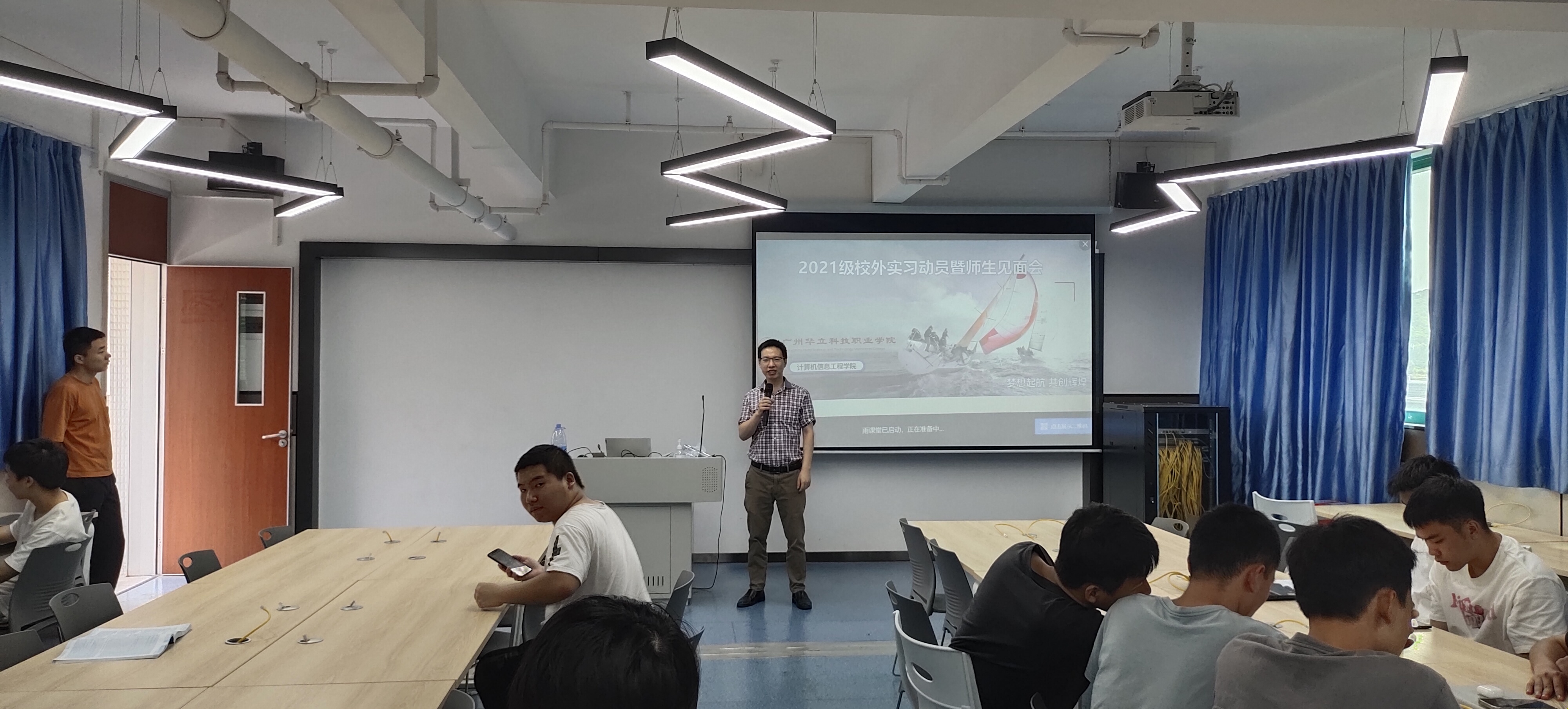 根據(jù)廣州華立科技職業(yè)學院2023-2024學年校外實踐教學工作方案要求,學院制定了2021級學生的校外實踐教學計劃,認真落實實習工作安排。通過校外實踐教學培養(yǎng)學生適應社會、融入工作環(huán)境的能力,增強學生的社會責任感、創(chuàng)新精神和實踐能力,提高學生的綜合技能,從而達到提高教學質(zhì)量、實現(xiàn)培養(yǎng)目標的重要目的。在學院的統(tǒng)籌安排下,計算機學院7個自然班于2023年5月18日-19日陸續(xù)開展了校外實踐指導實師生見面會。