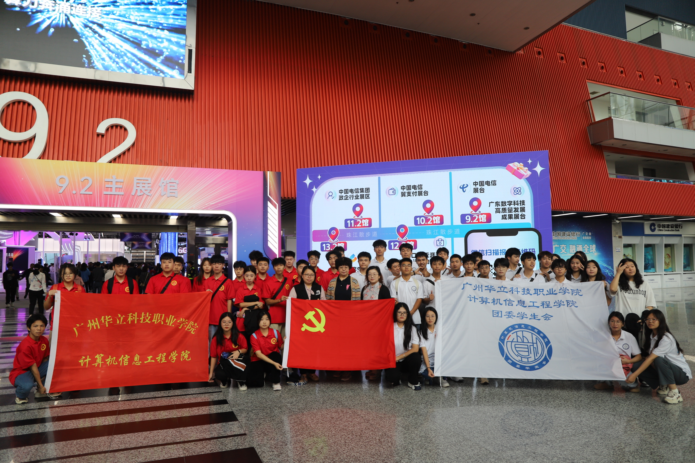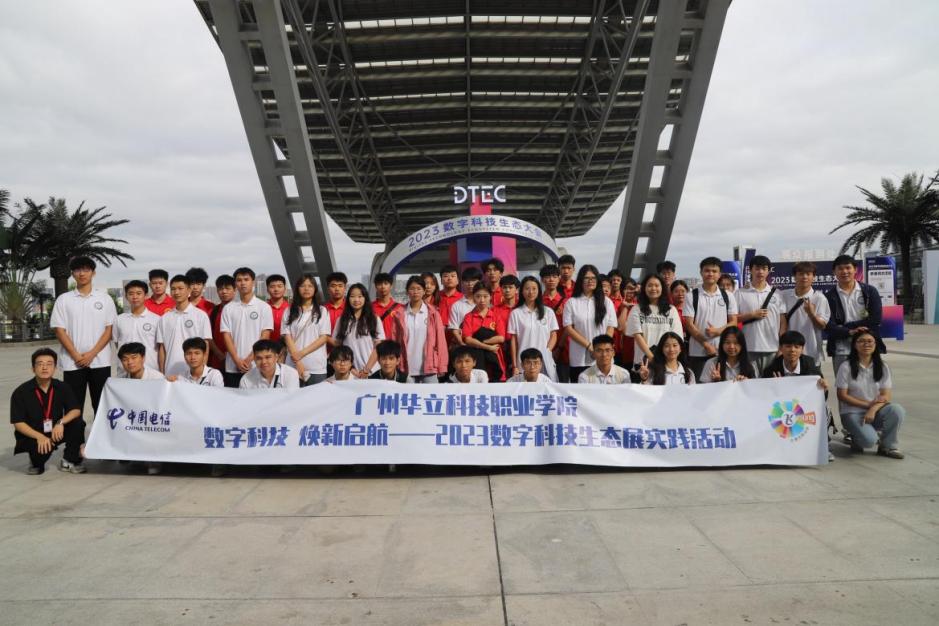 2023年11月12日,廣州華立科技職業(yè)學院計算機信息工程學院師生受邀參加中國電信2023“數(shù)字科技,煥新啟程”——數(shù)字科技生態(tài)展,開展實踐活動。學校產(chǎn)教融合辦主任陳茜、計算機信息工程學院院長王建華教授、黨總支書記閔小翠、團委書記胡蓉、黨建小組指導老師張栢桐以及50名學生代表抵達會展中心現(xiàn)場進行學習交流,院長王建華教授應邀在展會上作云計算技術(shù)專題介紹。