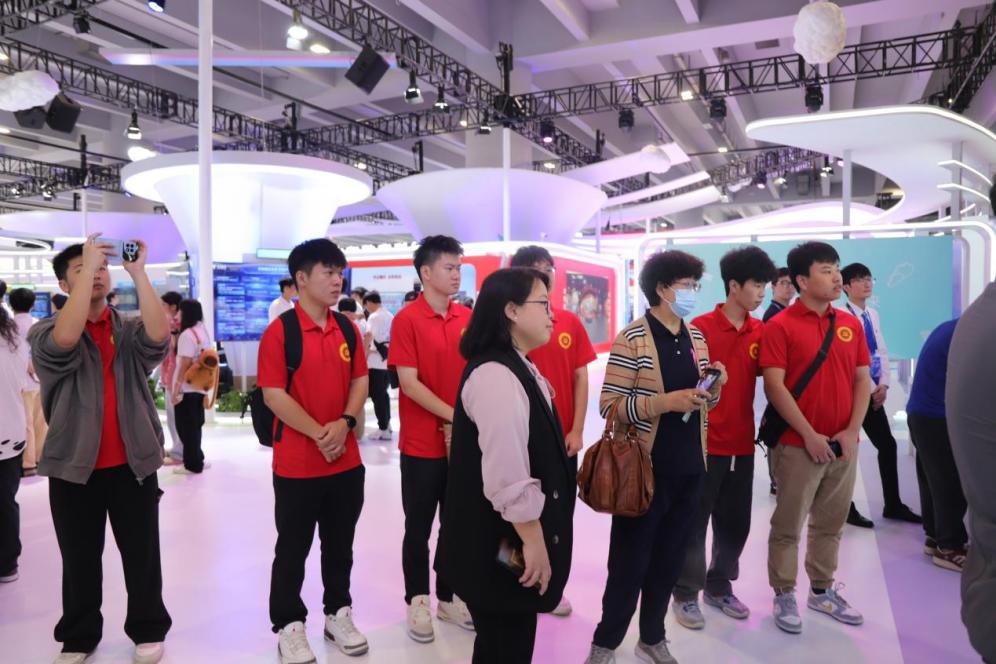 在會展中心的會場內(nèi),各種陳列的數(shù)字信息科技產(chǎn)品。為大家?guī)砹艘粓鼋k麗多彩、震撼人心的視覺盛宴。各場館圍繞科技創(chuàng)新、產(chǎn)業(yè)數(shù)字化、視聯(lián)科技、人工智能、衛(wèi)星通信、智慧運營、綠色發(fā)展等話題展示數(shù)字科技新成果。