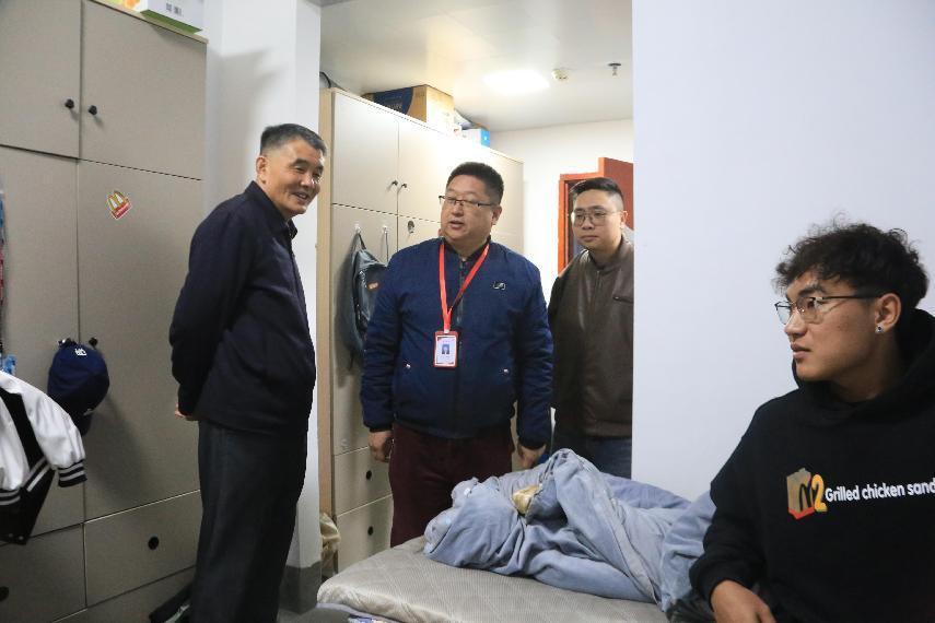 為進(jìn)一步做好對(duì)學(xué)生的教育、管理與服務(wù),及時(shí)了解學(xué)生返校情況和思想動(dòng)態(tài)。新學(xué)期開(kāi)學(xué)伊始,由陳德清校長(zhǎng),陳勝軍保衛(wèi)處處長(zhǎng)、我院宋海泉副院長(zhǎng)、朱志豪學(xué)管主任以及計(jì)算機(jī)信息工程學(xué)院全體輔導(dǎo)員帶隊(duì)走訪學(xué)生宿舍,看望慰問(wèn)返校學(xué)生,實(shí)地了解學(xué)生在宿舍的學(xué)習(xí)、生活、心理等情況,為學(xué)生送去關(guān)心和問(wèn)候。