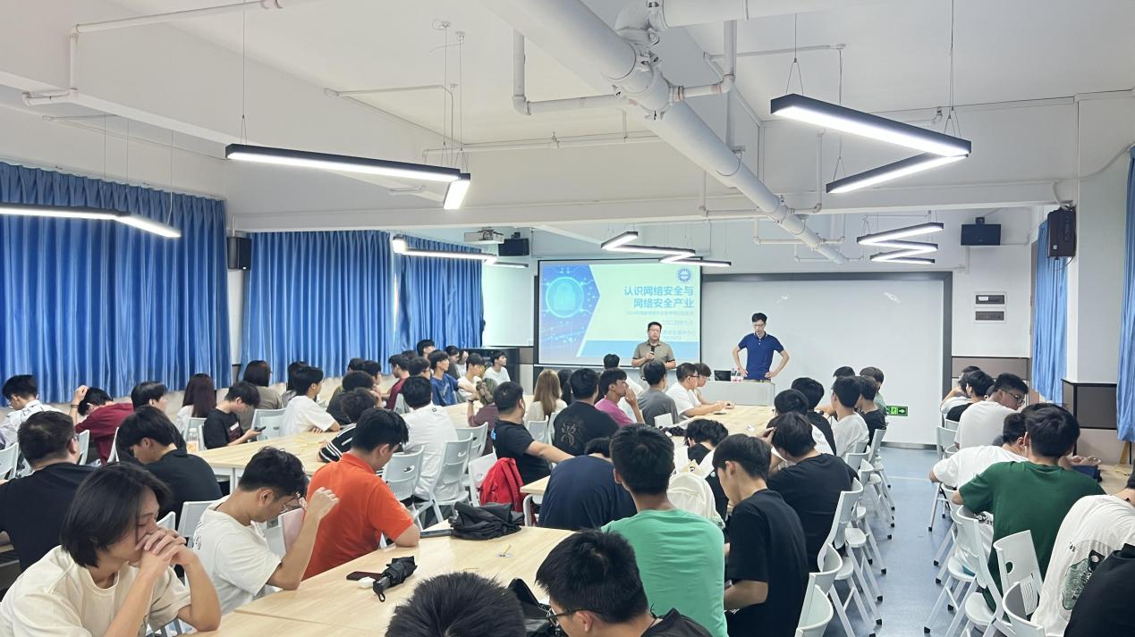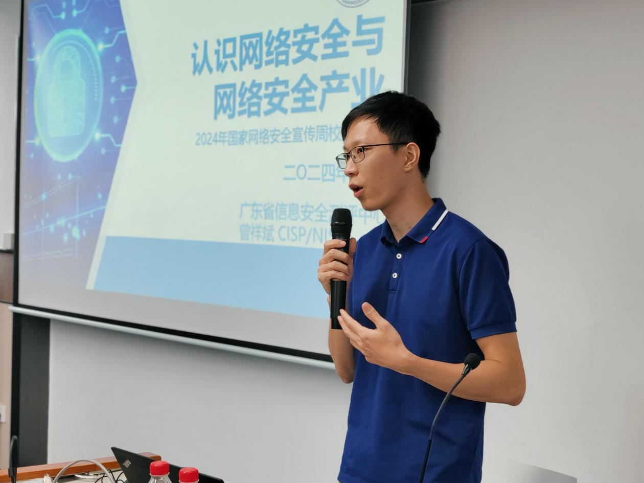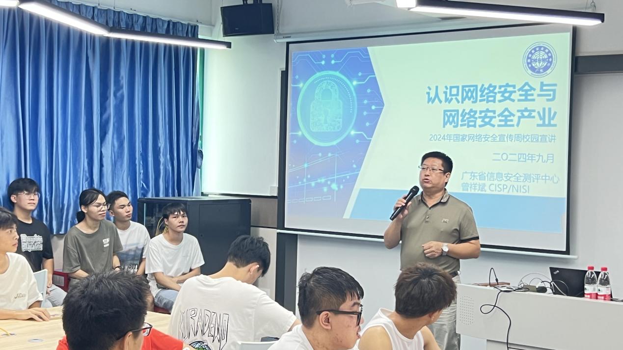 隨著2024年國(guó)家網(wǎng)絡(luò)安全宣傳周的正式啟幕,網(wǎng)絡(luò)安全這一重要議題在全國(guó)范圍內(nèi)掀起了一股學(xué)習(xí)與實(shí)踐的熱潮。為深入貫徹習(xí)近平總書(shū)記關(guān)于中央網(wǎng)絡(luò)安全工作的戰(zhàn)略部署,積極響應(yīng)“網(wǎng)絡(luò)安全為人民,網(wǎng)絡(luò)安全靠人民”的號(hào)召,2024年9月14日下午,我院2024級(jí)新生迎來(lái)了一次內(nèi)容豐富、意義深遠(yuǎn)的網(wǎng)絡(luò)安全主題教育活動(dòng)。本次網(wǎng)絡(luò)安全主題教育由我院黨總支書(shū)記、副院長(zhǎng)宋海泉書(shū)記主持,并邀請(qǐng)了廣東省信息安全測(cè)評(píng)中心曾祥斌老師為同學(xué)們上課。